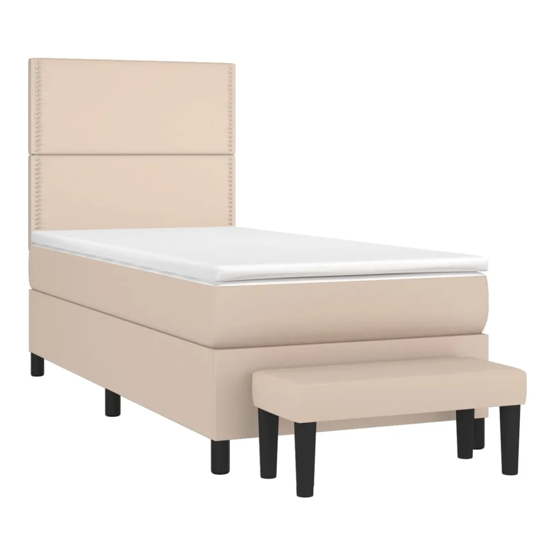 Utilisez ce lit à sommier pour profiter d'une nuit de sommeil réparatrice ! Il vous offre une relaxation maximale et un sommeil agréable. Similicuir durable : le similicuir de qualité supérieure est un matériau très durable. Il est résistant aux taches, ce qui le rend facile à nettoyer avec un chiffon humide. La surface lisse donne également un aspect luxueux et la beauté du cuir véritable.Tête de lit pratique : la tête de lit est réglable en hauteur selon vos préférences. La tête de lit vous offre un excellent soutien du dos lorsque vous êtes assis dans votre lit pour lire ou regarder la télévision.Matelas à ressorts ensachés : le ressort ensaché individuel intégré est connu pour sa très haute qualité tout en assurant un haut niveau de durabilité et d'adaptabilité. Il peut absorber efficacement le bruit et les chocs causés par les sauts et les rotations.Support moyen-dur : ce matelas de lit offre une stabilité accrue et juste le niveau de fermeté sans sacrifier le confort. Il est donc idéal pour les personnes qui dorment sur le dos ou sur le ventre.Protège-matelas doux pour la peau : le protège-matelas est recouvert d'un tissu résistant et doux pour la peau, ce qui le rend souple et confortable.Banc multifonctionnel : ce banc peut servir de siège supplémentaire dans votre maison. Il peut également être utilisé comme banc de bout de lit. Remarque :Pour des raisons d'hygiène, le matelas ne peut pas être retourné si l'emballage est retiré ou ouvert.Chaque produit est livré avec un manuel de montage dans la boîte pour un montage facile.
