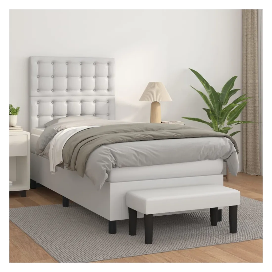 Sommier à lattes de lit avec matelas Blanc 90x190 cm Similicuir