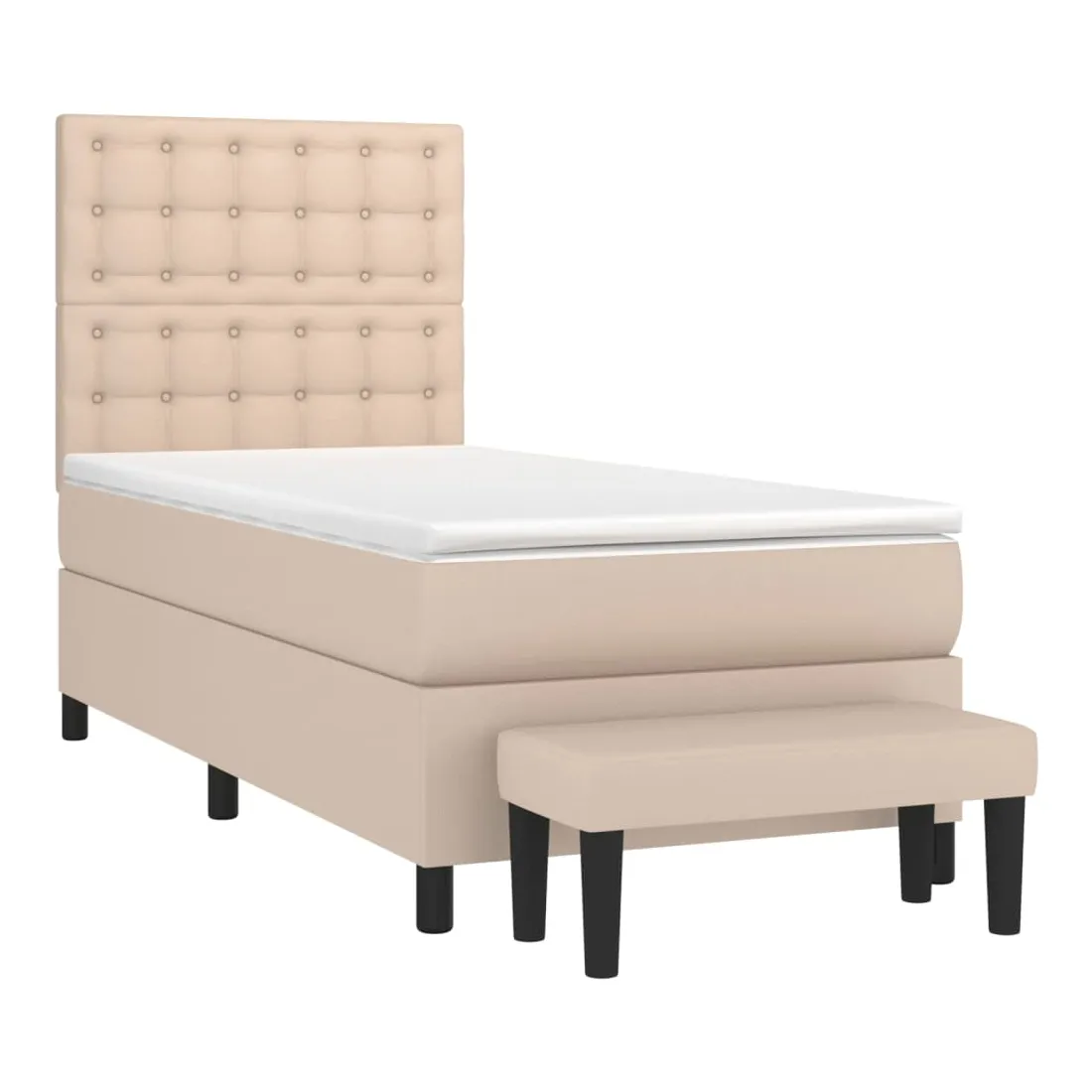 Utilisez ce lit à sommier pour profiter d'une nuit de sommeil réparatrice ! Il vous offre une relaxation maximale et un sommeil agréable. Similicuir durable : le similicuir de qualité supérieure est un matériau très durable. Il est résistant aux taches, ce qui le rend facile à nettoyer avec un chiffon humide. La surface lisse donne également un aspect luxueux et la beauté du cuir véritable.Tête de lit pratique : la tête de lit est réglable en hauteur selon vos préférences. La tête de lit vous offre un excellent soutien du dos lorsque vous êtes assis dans votre lit pour lire ou regarder la télévision.Matelas à ressorts ensachés : le ressort ensaché individuel intégré est connu pour sa très haute qualité tout en assurant un haut niveau de durabilité et d'adaptabilité. Il peut absorber efficacement le bruit et les chocs causés par les sauts et les rotations.Support moyen-dur : ce matelas de lit offre une stabilité accrue et juste le niveau de fermeté sans sacrifier le confort. Il est donc idéal pour les personnes qui dorment sur le dos ou sur le ventre.Protège-matelas doux pour la peau : le protège-matelas est recouvert d'un tissu résistant et doux pour la peau, ce qui le rend souple et confortable.Banc multifonctionnel : ce banc peut servir de siège supplémentaire dans votre maison. Il peut également être utilisé comme banc de bout de lit. Remarque :Pour des raisons d'hygiène, le matelas ne peut pas être retourné si l'emballage est retiré ou ouvert.Chaque produit est livré avec un manuel de montage dans la boîte pour un montage facile.