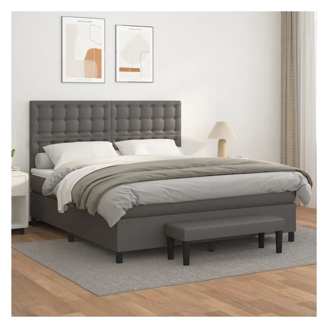 Utilisez ce lit à sommier pour profiter d'une nuit de sommeil réparatrice ! Il vous offre une relaxation maximale et un sommeil agréable. Similicuir durable : le similicuir de qualité supérieure est un matériau très durable. Il est résistant aux taches, ce qui le rend facile à nettoyer avec un chiffon humide. La surface lisse donne également un aspect luxueux et la beauté du cuir véritable.Tête de lit pratique : la tête de lit est réglable en hauteur selon vos préférences. La tête de lit vous offre un excellent soutien du dos lorsque vous êtes assis dans votre lit pour lire ou regarder la télévision.Matelas à ressorts ensachés : le ressort ensaché individuel intégré est connu pour sa très haute qualité tout en assurant un haut niveau de durabilité et d'adaptabilité. Il peut absorber efficacement le bruit et les chocs causés par les sauts et les rotations.Support moyen-dur : ce matelas de lit offre une stabilité accrue et juste le niveau de fermeté sans sacrifier le confort. Il est donc idéal pour les personnes qui dorment sur le dos ou sur le ventre.Protège-matelas doux pour la peau : le protège-matelas est recouvert d'un tissu résistant et doux pour la peau, ce qui le rend souple et confortable.Banc multifonctionnel : ce banc peut servir de siège supplémentaire dans votre maison. Il peut également être utilisé comme banc de bout de lit. Remarque :Pour des raisons d'hygiène, le matelas ne peut pas être retourné si l'emballage est retiré ou ouvert.Chaque produit est livré avec un manuel de montage dans la boîte pour un montage facile.