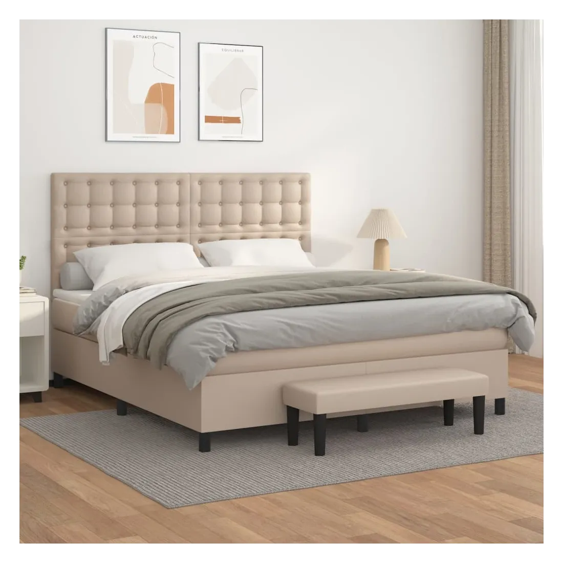 Utilisez ce lit à sommier pour profiter d'une nuit de sommeil réparatrice ! Il vous offre une relaxation maximale et un sommeil agréable. Similicuir durable : le similicuir de qualité supérieure est un matériau très durable. Il est résistant aux taches, ce qui le rend facile à nettoyer avec un chiffon humide. La surface lisse donne également un aspect luxueux et la beauté du cuir véritable.Tête de lit pratique : la tête de lit est réglable en hauteur selon vos préférences. La tête de lit vous offre un excellent soutien du dos lorsque vous êtes assis dans votre lit pour lire ou regarder la télévision.Matelas à ressorts ensachés : le ressort ensaché individuel intégré est connu pour sa très haute qualité tout en assurant un haut niveau de durabilité et d'adaptabilité. Il peut absorber efficacement le bruit et les chocs causés par les sauts et les rotations.Support moyen-dur : ce matelas de lit offre une stabilité accrue et juste le niveau de fermeté sans sacrifier le confort. Il est donc idéal pour les personnes qui dorment sur le dos ou sur le ventre.Protège-matelas doux pour la peau : le protège-matelas est recouvert d'un tissu résistant et doux pour la peau, ce qui le rend souple et confortable.Banc multifonctionnel : ce banc peut servir de siège supplémentaire dans votre maison. Il peut également être utilisé comme banc de bout de lit. Remarque :Pour des raisons d'hygiène, le matelas ne peut pas être retourné si l'emballage est retiré ou ouvert.Chaque produit est livré avec un manuel de montage dans la boîte pour un montage facile.