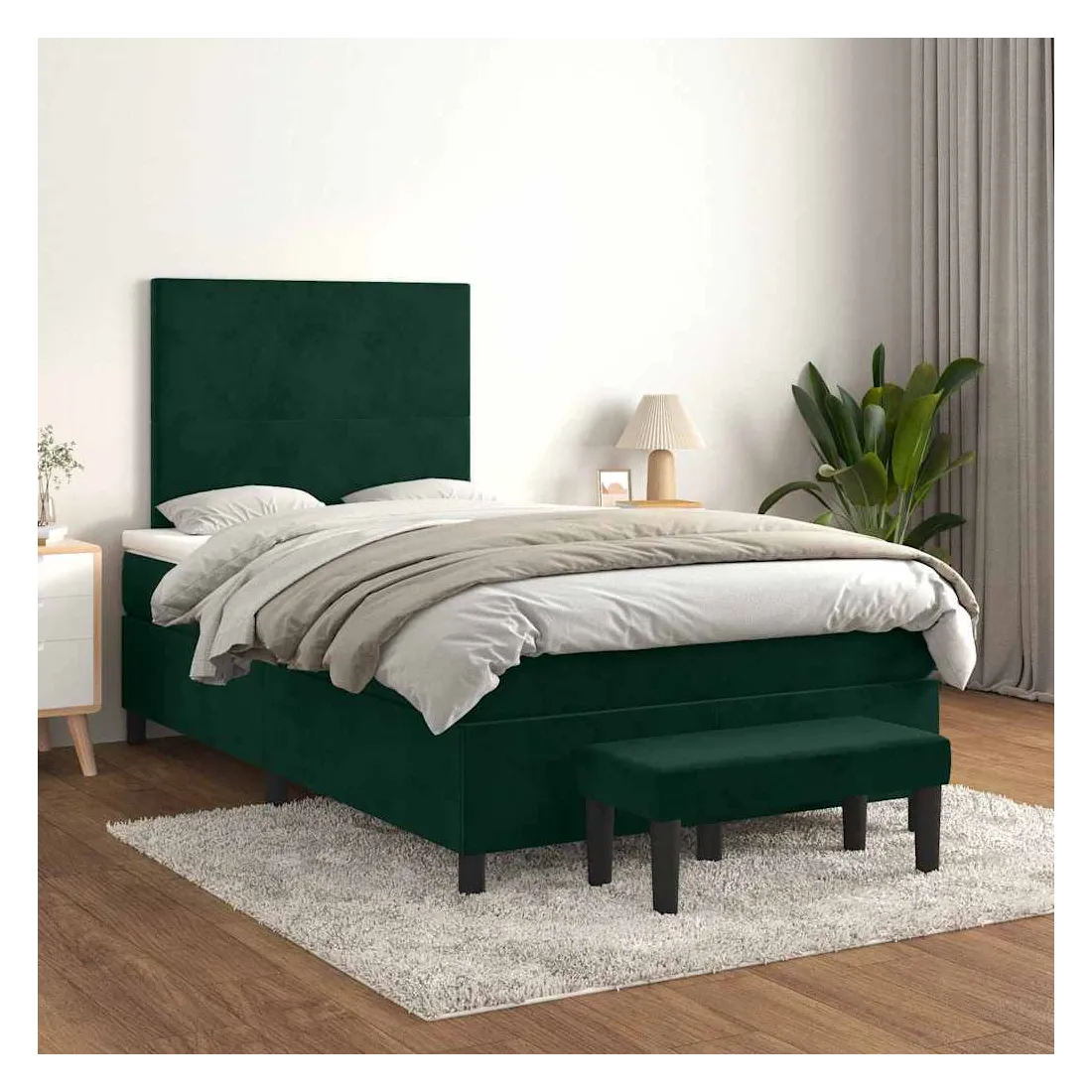 Utilisez ce lit à sommier pour profiter d'une nuit de sommeil réparatrice ! Il vous offre une relaxation maximale et un sommeil agréable. Velours doux : le velours est un tissu doux et luxueux qui se reconnaît à son tas dense de fibres uniformément coupées qui ont une touche lisse. Le tissu en velours présente un toucher doux distinctif, ce qui le rend confortable au toucher.Tête de lit pratique : la tête de lit est réglable en hauteur selon vos préférences. La tête de lit vous offre un excellent soutien du dos lorsque vous êtes assis dans votre lit pour lire ou regarder la télévision.Matelas à ressorts ensachés : le ressort ensaché individuel intégré est connu pour sa très haute qualité tout en assurant un haut niveau de durabilité et d'adaptabilité. Il peut absorber efficacement le bruit et les chocs causés par les sauts et les rotations.Support moyen-dur : ce matelas de lit offre une stabilité accrue et juste le niveau de fermeté sans sacrifier le confort. Il est donc idéal pour les personnes qui dorment sur le dos ou sur le ventre.Protège-matelas doux pour la peau : le protège-matelas est recouvert d'un tissu résistant et doux pour la peau, ce qui le rend souple et confortable.Banc multifonctionnel : ce banc peut servir de siège supplémentaire dans votre maison. Il peut également être utilisé comme banc de bout de lit. Remarque :Pour des raisons d'hygiène, le matelas ne peut pas être retourné si l'emballage est retiré ou ouvert.Chaque produit est livré avec un manuel de montage dans la boîte pour un montage facile.