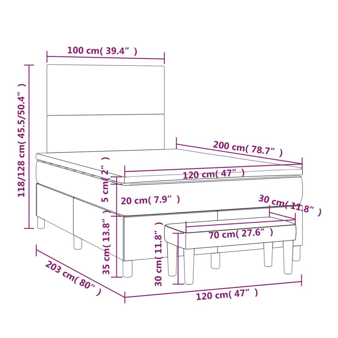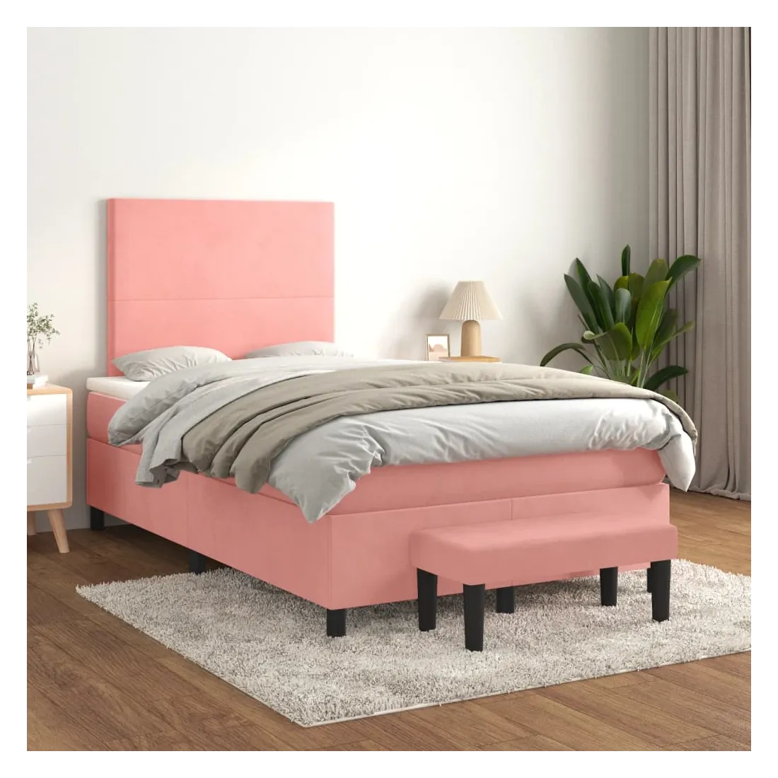 Utilisez ce lit à sommier pour profiter d'une nuit de sommeil réparatrice ! Il vous offre une relaxation maximale et un sommeil agréable. Velours doux : le velours est un tissu doux et luxueux qui se reconnaît à son tas dense de fibres uniformément coupées qui ont une touche lisse. Le tissu en velours présente un toucher doux distinctif, ce qui le rend confortable au toucher.Tête de lit pratique : la tête de lit est réglable en hauteur selon vos préférences. La tête de lit vous offre un excellent soutien du dos lorsque vous êtes assis dans votre lit pour lire ou regarder la télévision.Matelas à ressorts ensachés : le ressort ensaché individuel intégré est connu pour sa très haute qualité tout en assurant un haut niveau de durabilité et d'adaptabilité. Il peut absorber efficacement le bruit et les chocs causés par les sauts et les rotations.Support moyen-dur : ce matelas de lit offre une stabilité accrue et juste le niveau de fermeté sans sacrifier le confort. Il est donc idéal pour les personnes qui dorment sur le dos ou sur le ventre.Protège-matelas doux pour la peau : le protège-matelas est recouvert d'un tissu résistant et doux pour la peau, ce qui le rend souple et confortable.Banc multifonctionnel : ce banc peut servir de siège supplémentaire dans votre maison. Il peut également être utilisé comme banc de bout de lit. Remarque :Pour des raisons d'hygiène, le matelas ne peut pas être retourné si l'emballage est retiré ou ouvert.Chaque produit est livré avec un manuel de montage dans la boîte pour un montage facile.