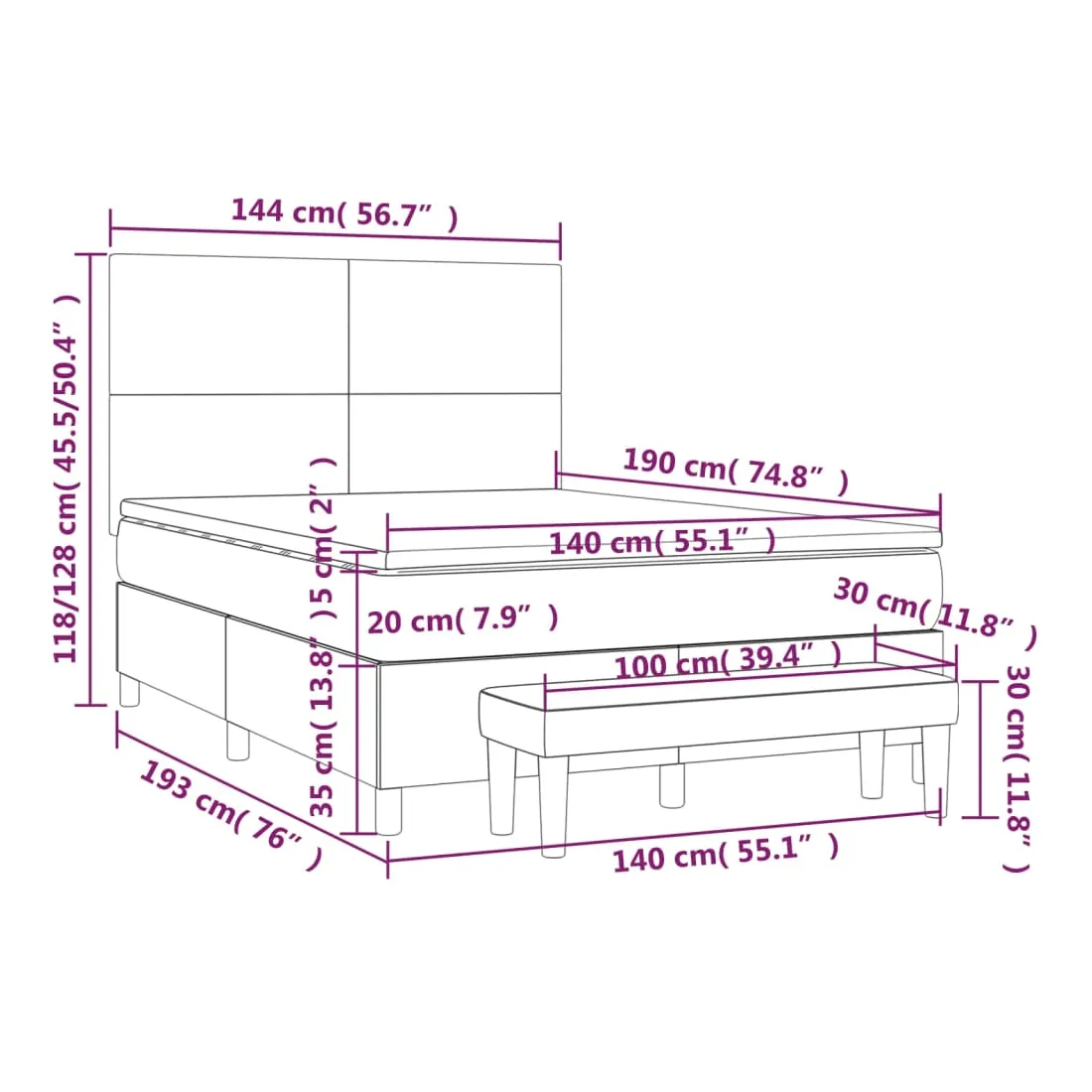 Utilisez ce lit à sommier pour profiter d'une nuit de sommeil réparatrice ! Il vous offre une relaxation maximale et un sommeil agréable. Velours doux : le velours est un tissu doux et luxueux qui se reconnaît à son tas dense de fibres uniformément coupées qui ont une touche lisse. Le tissu en velours présente un toucher doux distinctif, ce qui le rend confortable au toucher.Tête de lit pratique : la tête de lit est réglable en hauteur selon vos préférences. La tête de lit vous offre un excellent soutien du dos lorsque vous êtes assis dans votre lit pour lire ou regarder la télévision.Matelas à ressorts ensachés : le ressort ensaché individuel intégré est connu pour sa très haute qualité tout en assurant un haut niveau de durabilité et d'adaptabilité. Il peut absorber efficacement le bruit et les chocs causés par les sauts et les rotations.Support moyen-dur : ce matelas de lit offre une stabilité accrue et juste le niveau de fermeté sans sacrifier le confort. Il est donc idéal pour les personnes qui dorment sur le dos ou sur le ventre.Protège-matelas doux pour la peau : le protège-matelas est recouvert d'un tissu résistant et doux pour la peau, ce qui le rend souple et confortable.Banc multifonctionnel : ce banc peut servir de siège supplémentaire dans votre maison. Il peut également être utilisé comme banc de bout de lit. Remarque :Pour des raisons d'hygiène, le matelas ne peut pas être retourné si l'emballage est retiré ou ouvert.Chaque produit est livré avec un manuel de montage dans la boîte pour un montage facile.
