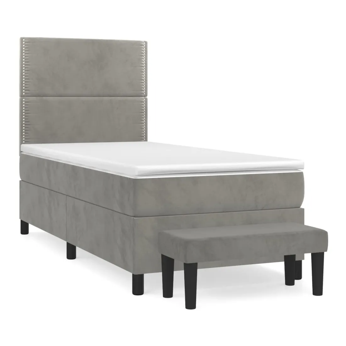 Sommier à lattes de lit et matelas Gris clair 90x190 cm Velours