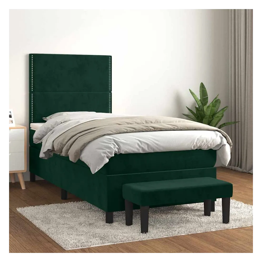 Sommier à lattes de lit avec matelas Vert foncé 90x190 cm