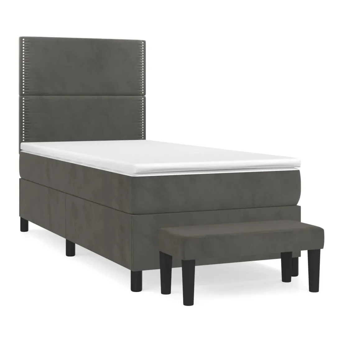 Utilisez ce lit à sommier pour profiter d'une nuit de sommeil réparatrice ! Il vous offre une relaxation maximale et un sommeil agréable. Velours doux : le velours est un tissu doux et luxueux qui se reconnaît à son tas dense de fibres uniformément coupées qui ont une touche lisse. Le tissu en velours présente un toucher doux distinctif, ce qui le rend confortable au toucher.Tête de lit pratique : la tête de lit est réglable en hauteur selon vos préférences. La tête de lit vous offre un excellent soutien du dos lorsque vous êtes assis dans votre lit pour lire ou regarder la télévision.Matelas à ressorts ensachés : le ressort ensaché individuel intégré est connu pour sa très haute qualité tout en assurant un haut niveau de durabilité et d'adaptabilité. Il peut absorber efficacement le bruit et les chocs causés par les sauts et les rotations.Support moyen-dur : ce matelas de lit offre une stabilité accrue et juste le niveau de fermeté sans sacrifier le confort. Il est donc idéal pour les personnes qui dorment sur le dos ou sur le ventre.Protège-matelas doux pour la peau : le protège-matelas est recouvert d'un tissu résistant et doux pour la peau, ce qui le rend souple et confortable.Banc multifonctionnel : ce banc peut servir de siège supplémentaire dans votre maison. Il peut également être utilisé comme banc de bout de lit. Remarque :Pour des raisons d'hygiène, le matelas ne peut pas être retourné si l'emballage est retiré ou ouvert.Chaque produit est livré avec un manuel de montage dans la boîte pour un montage facile.