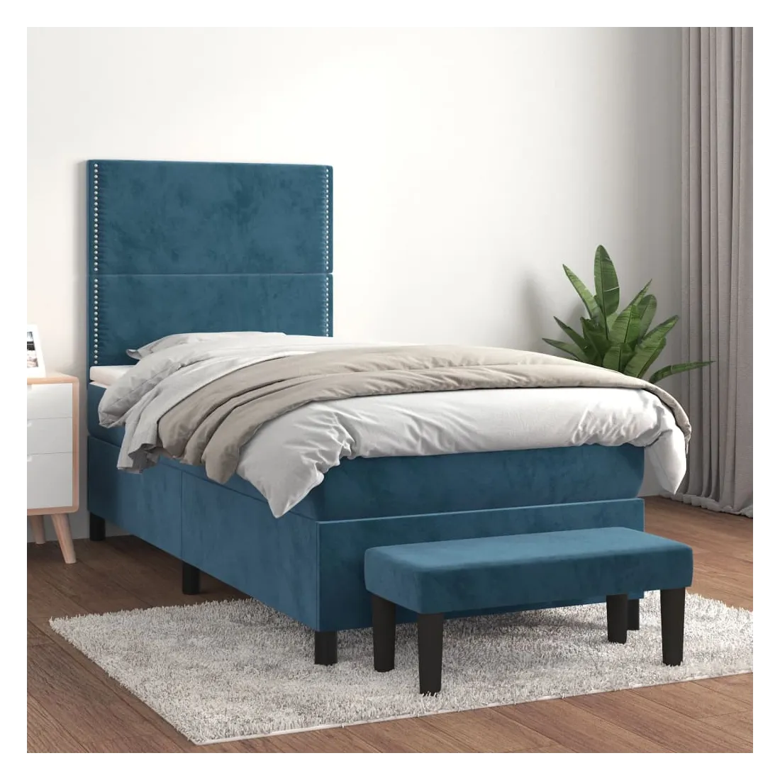 Utilisez ce lit à sommier pour profiter d'une nuit de sommeil réparatrice ! Il vous offre une relaxation maximale et un sommeil agréable. Velours doux : le velours est un tissu doux et luxueux qui se reconnaît à son tas dense de fibres uniformément coupées qui ont une touche lisse. Le tissu en velours présente un toucher doux distinctif, ce qui le rend confortable au toucher.Tête de lit pratique : la tête de lit est réglable en hauteur selon vos préférences. La tête de lit vous offre un excellent soutien du dos lorsque vous êtes assis dans votre lit pour lire ou regarder la télévision.Matelas à ressorts ensachés : le ressort ensaché individuel intégré est connu pour sa très haute qualité tout en assurant un haut niveau de durabilité et d'adaptabilité. Il peut absorber efficacement le bruit et les chocs causés par les sauts et les rotations.Support moyen-dur : ce matelas de lit offre une stabilité accrue et juste le niveau de fermeté sans sacrifier le confort. Il est donc idéal pour les personnes qui dorment sur le dos ou sur le ventre.Protège-matelas doux pour la peau : le protège-matelas est recouvert d'un tissu résistant et doux pour la peau, ce qui le rend souple et confortable.Banc multifonctionnel : ce banc peut servir de siège supplémentaire dans votre maison. Il peut également être utilisé comme banc de bout de lit. Remarque :Pour des raisons d'hygiène, le matelas ne peut pas être retourné si l'emballage est retiré ou ouvert.Chaque produit est livré avec un manuel de montage dans la boîte pour un montage facile.