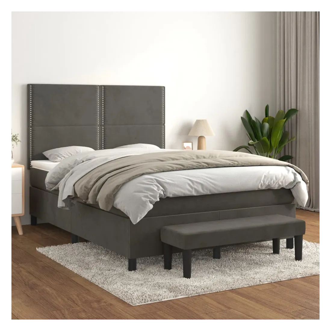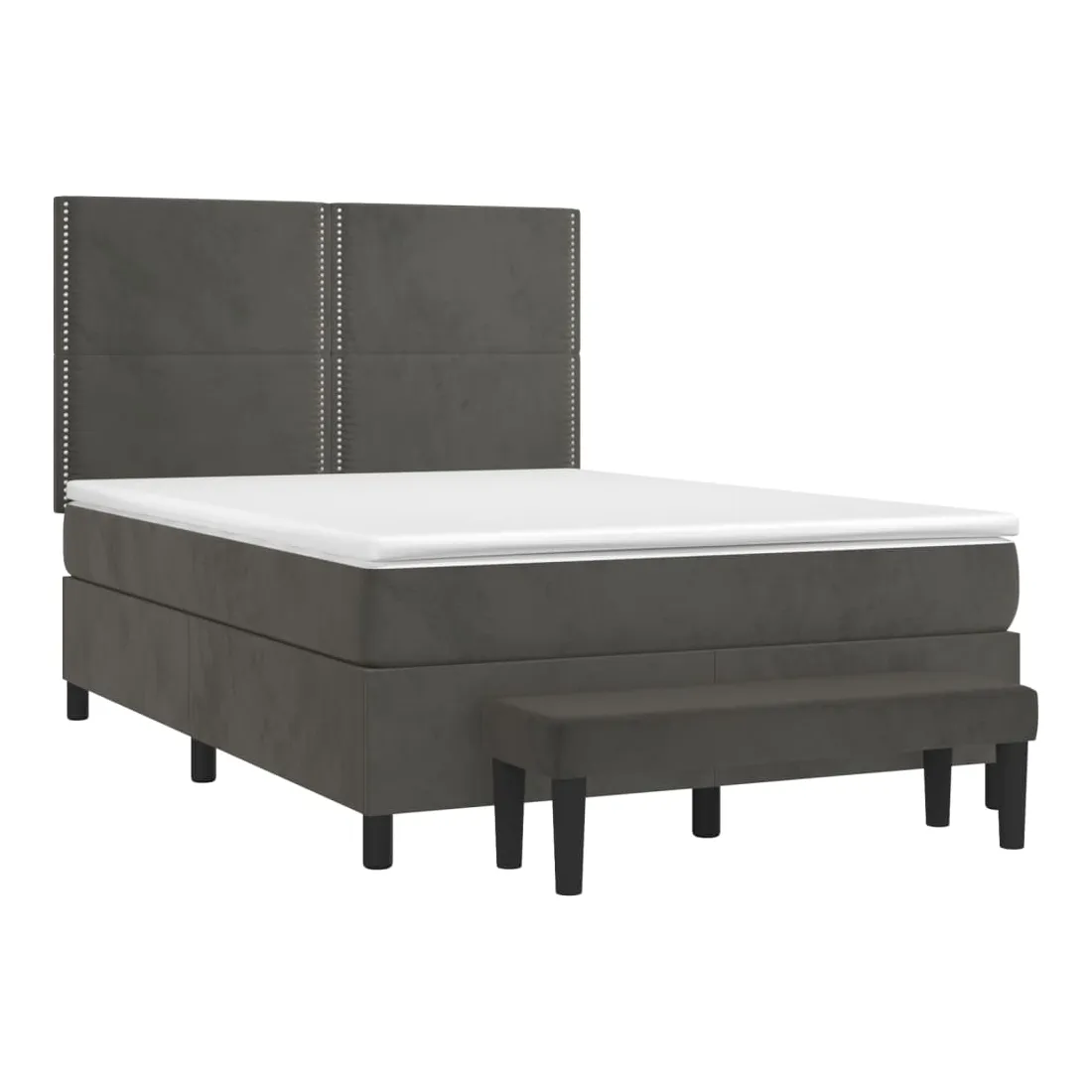 Utilisez ce lit à sommier pour profiter d'une nuit de sommeil réparatrice ! Il vous offre une relaxation maximale et un sommeil agréable. Velours doux : le velours est un tissu doux et luxueux qui se reconnaît à son tas dense de fibres uniformément coupées qui ont une touche lisse. Le tissu en velours présente un toucher doux distinctif, ce qui le rend confortable au toucher.Tête de lit pratique : la tête de lit est réglable en hauteur selon vos préférences. La tête de lit vous offre un excellent soutien du dos lorsque vous êtes assis dans votre lit pour lire ou regarder la télévision.Matelas à ressorts ensachés : le ressort ensaché individuel intégré est connu pour sa très haute qualité tout en assurant un haut niveau de durabilité et d'adaptabilité. Il peut absorber efficacement le bruit et les chocs causés par les sauts et les rotations.Support moyen-dur : ce matelas de lit offre une stabilité accrue et juste le niveau de fermeté sans sacrifier le confort. Il est donc idéal pour les personnes qui dorment sur le dos ou sur le ventre.Protège-matelas doux pour la peau : le protège-matelas est recouvert d'un tissu résistant et doux pour la peau, ce qui le rend souple et confortable.Banc multifonctionnel : ce banc peut servir de siège supplémentaire dans votre maison. Il peut également être utilisé comme banc de bout de lit. Remarque :Pour des raisons d'hygiène, le matelas ne peut pas être retourné si l'emballage est retiré ou ouvert.Chaque produit est livré avec un manuel de montage dans la boîte pour un montage facile.