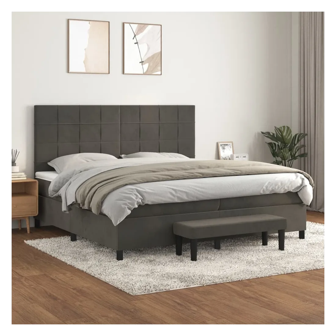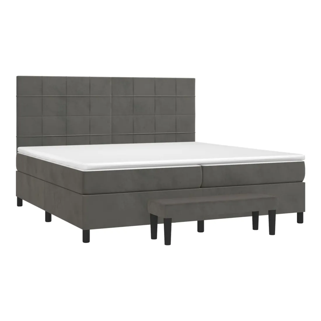 Utilisez ce lit à sommier pour profiter d'une nuit de sommeil réparatrice ! Il vous offre une relaxation maximale et un sommeil agréable. Velours doux : le velours est un tissu doux et luxueux qui se reconnaît à son tas dense de fibres uniformément coupées qui ont une touche lisse. Le tissu en velours présente un toucher doux distinctif, ce qui le rend confortable au toucher.Tête de lit pratique : la tête de lit est réglable en hauteur selon vos préférences. La tête de lit vous offre un excellent soutien du dos lorsque vous êtes assis dans votre lit pour lire ou regarder la télévision.Matelas à ressorts ensachés : le ressort ensaché individuel intégré est connu pour sa très haute qualité tout en assurant un haut niveau de durabilité et d'adaptabilité. Il peut absorber efficacement le bruit et les chocs causés par les sauts et les rotations.Support moyen-dur : ce matelas de lit offre une stabilité accrue et juste le niveau de fermeté sans sacrifier le confort. Il est donc idéal pour les personnes qui dorment sur le dos ou sur le ventre.Protège-matelas doux pour la peau : le protège-matelas est recouvert d'un tissu résistant et doux pour la peau, ce qui le rend souple et confortable.Banc multifonctionnel : ce banc peut servir de siège supplémentaire dans votre maison. Il peut également être utilisé comme banc de bout de lit. Remarque :Pour des raisons d'hygiène, le matelas ne peut pas être retourné si l'emballage est retiré ou ouvert.Chaque produit est livré avec un manuel de montage dans la boîte pour un montage facile.