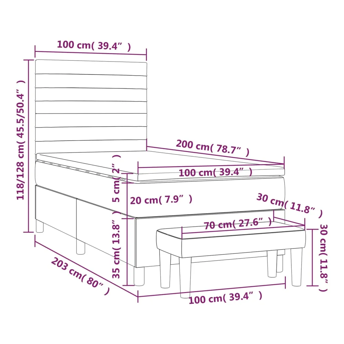 • Dimensions: 203 x 100 x 118/128 cm (L x l x H)