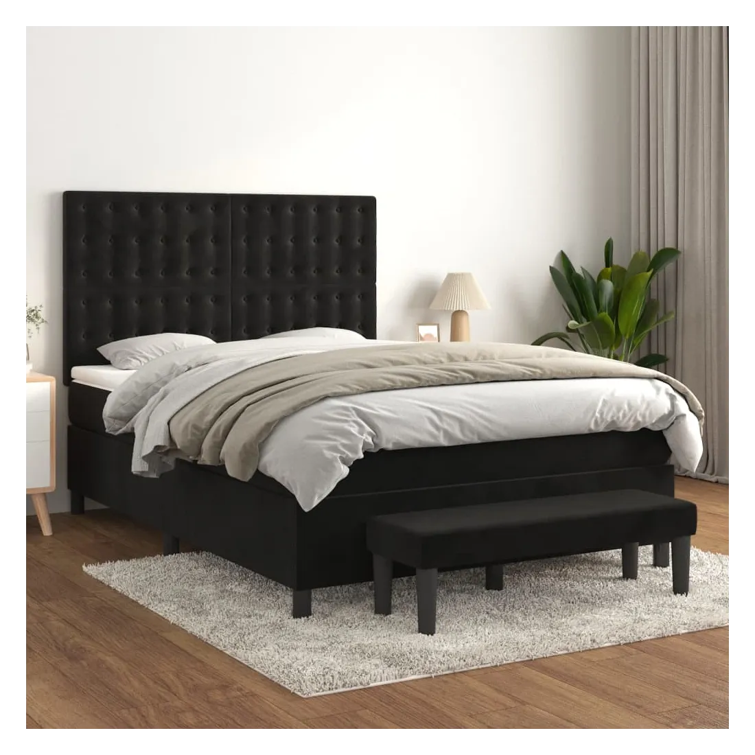 Utilisez ce lit à sommier pour profiter d'une nuit de sommeil réparatrice ! Il vous offre une relaxation maximale et un sommeil agréable. Velours doux : le velours est un tissu doux et luxueux qui se reconnaît à son tas dense de fibres uniformément coupées qui ont une touche lisse. Le tissu en velours présente un toucher doux distinctif, ce qui le rend confortable au toucher.Tête de lit pratique : la tête de lit est réglable en hauteur selon vos préférences. La tête de lit vous offre un excellent soutien du dos lorsque vous êtes assis dans votre lit pour lire ou regarder la télévision.Matelas à ressorts ensachés : le ressort ensaché individuel intégré est connu pour sa très haute qualité tout en assurant un haut niveau de durabilité et d'adaptabilité. Il peut absorber efficacement le bruit et les chocs causés par les sauts et les rotations.Support moyen-dur : ce matelas de lit offre une stabilité accrue et juste le niveau de fermeté sans sacrifier le confort. Il est donc idéal pour les personnes qui dorment sur le dos ou sur le ventre.Protège-matelas doux pour la peau : le protège-matelas est recouvert d'un tissu résistant et doux pour la peau, ce qui le rend souple et confortable.Banc multifonctionnel : ce banc peut servir de siège supplémentaire dans votre maison. Il peut également être utilisé comme banc de bout de lit. Remarque :Pour des raisons d'hygiène, le matelas ne peut pas être retourné si l'emballage est retiré ou ouvert.Chaque produit est livré avec un manuel de montage dans la boîte pour un montage facile.