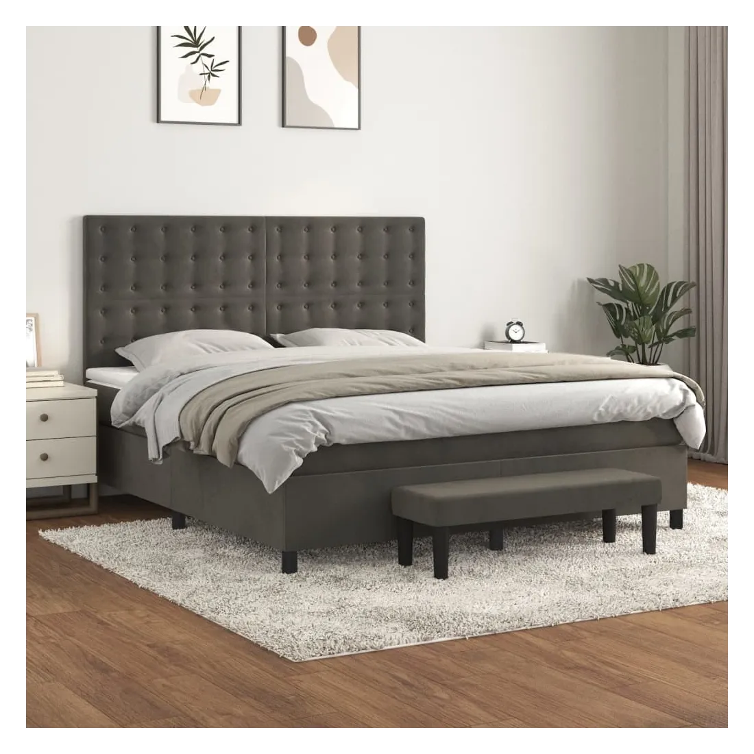 Sommier à lattes de lit et matelas Gris foncé 180x200cm Velours