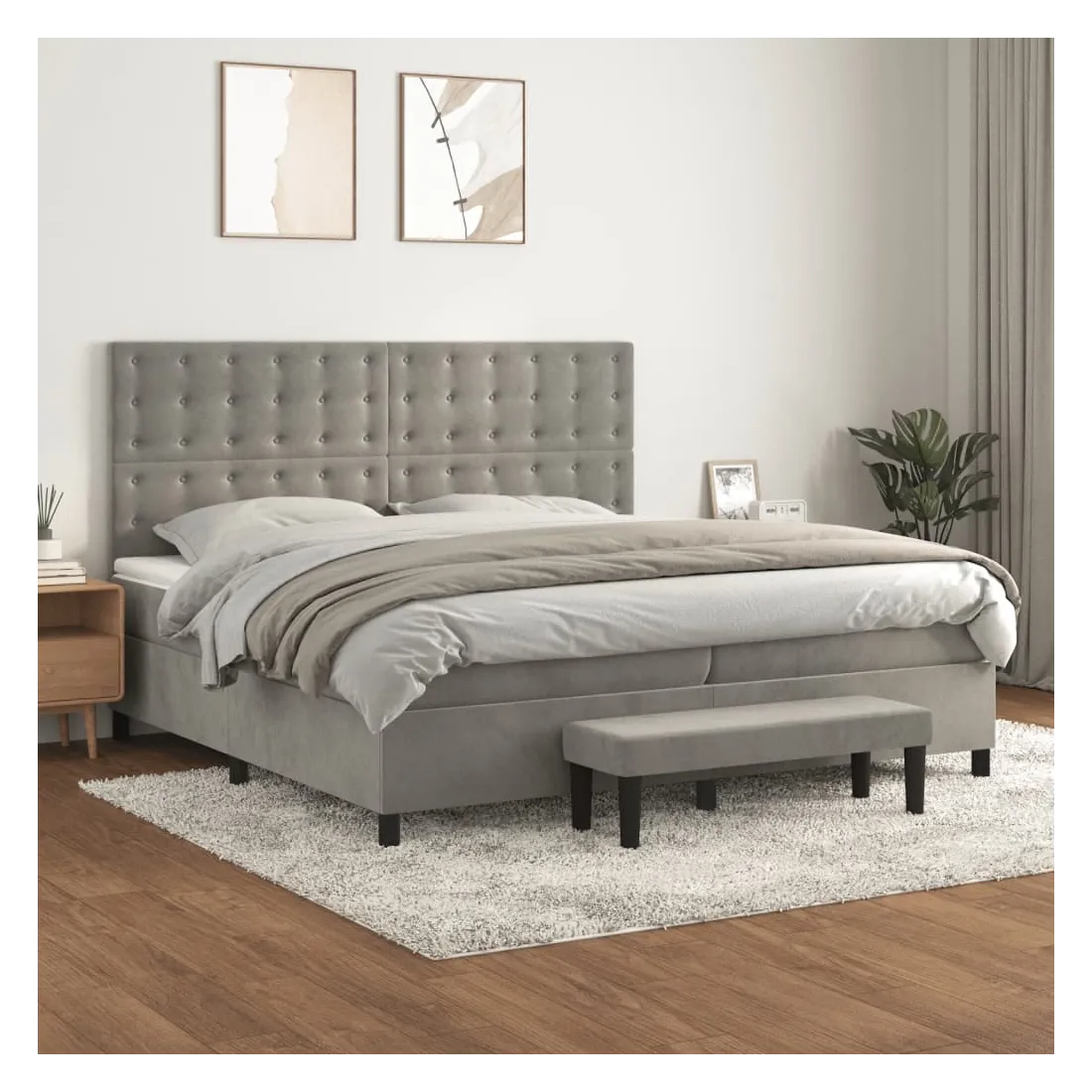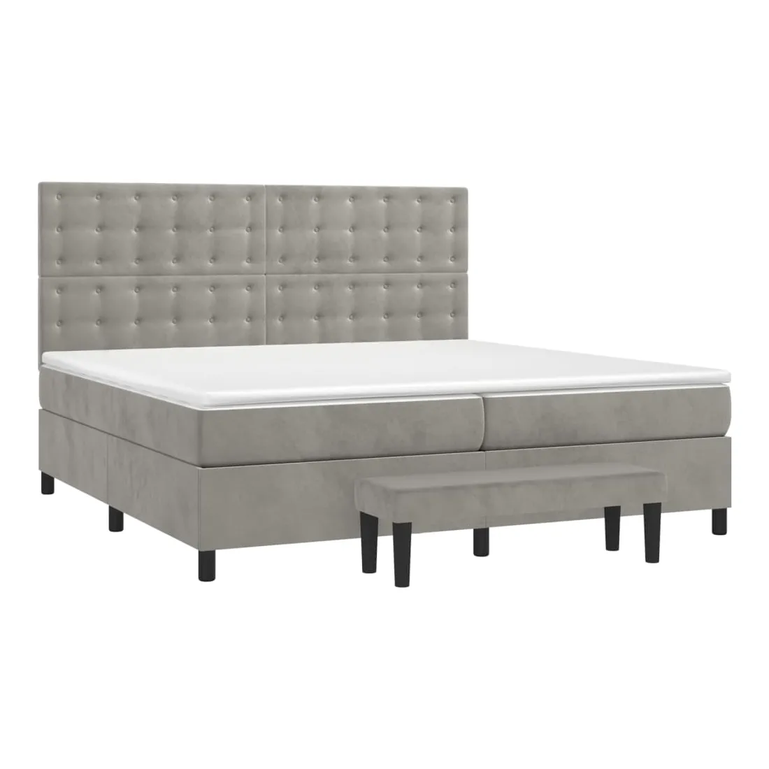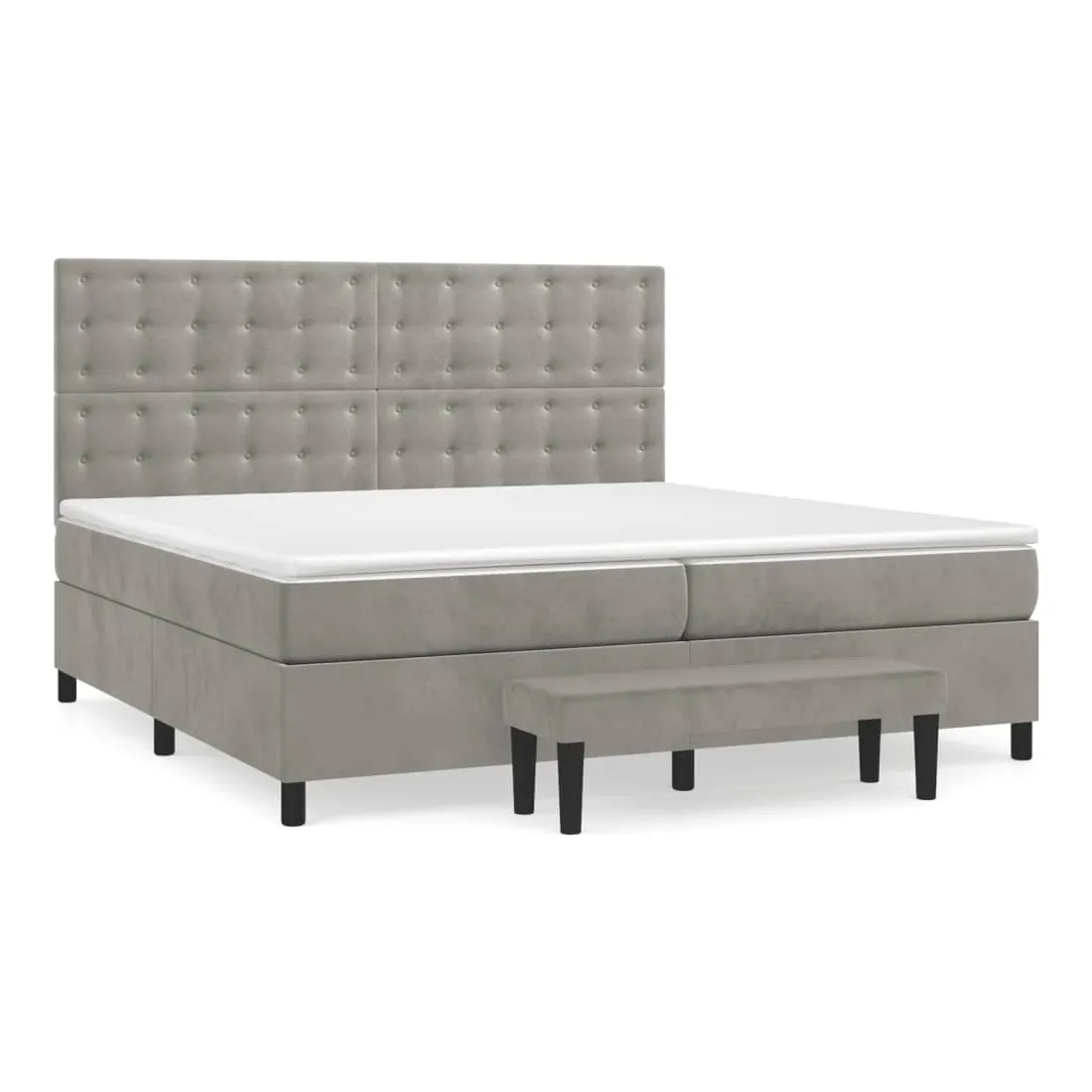 Utilisez ce lit à sommier pour profiter d'une nuit de sommeil réparatrice ! Il vous offre une relaxation maximale et un sommeil agréable. Velours doux : le velours est un tissu doux et luxueux qui se reconnaît à son tas dense de fibres uniformément coupées qui ont une touche lisse. Le tissu en velours présente un toucher doux distinctif, ce qui le rend confortable au toucher.Tête de lit pratique : la tête de lit est réglable en hauteur selon vos préférences. La tête de lit vous offre un excellent soutien du dos lorsque vous êtes assis dans votre lit pour lire ou regarder la télévision.Matelas à ressorts ensachés : le ressort ensaché individuel intégré est connu pour sa très haute qualité tout en assurant un haut niveau de durabilité et d'adaptabilité. Il peut absorber efficacement le bruit et les chocs causés par les sauts et les rotations.Support moyen-dur : ce matelas de lit offre une stabilité accrue et juste le niveau de fermeté sans sacrifier le confort. Il est donc idéal pour les personnes qui dorment sur le dos ou sur le ventre.Protège-matelas doux pour la peau : le protège-matelas est recouvert d'un tissu résistant et doux pour la peau, ce qui le rend souple et confortable.Banc multifonctionnel : ce banc peut servir de siège supplémentaire dans votre maison. Il peut également être utilisé comme banc de bout de lit. Remarque :Pour des raisons d'hygiène, le matelas ne peut pas être retourné si l'emballage est retiré ou ouvert.Chaque produit est livré avec un manuel de montage dans la boîte pour un montage facile.
