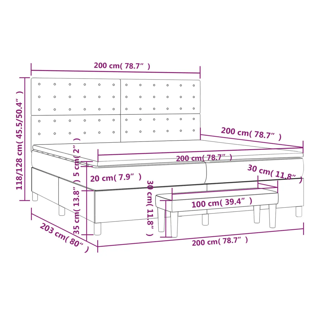 • Dimensions: 203 x 200 x 118/128 cm (L x l x H)