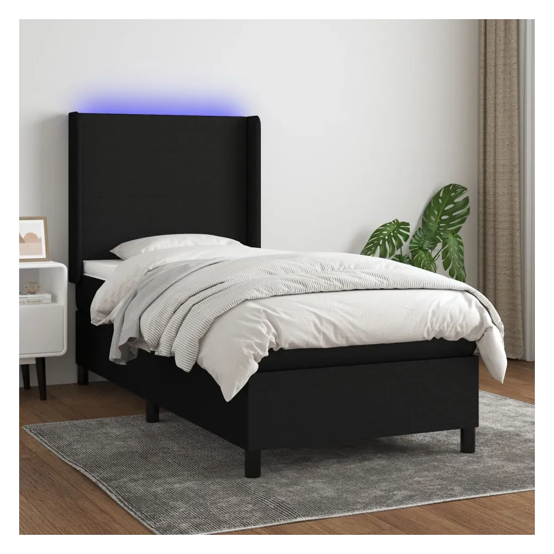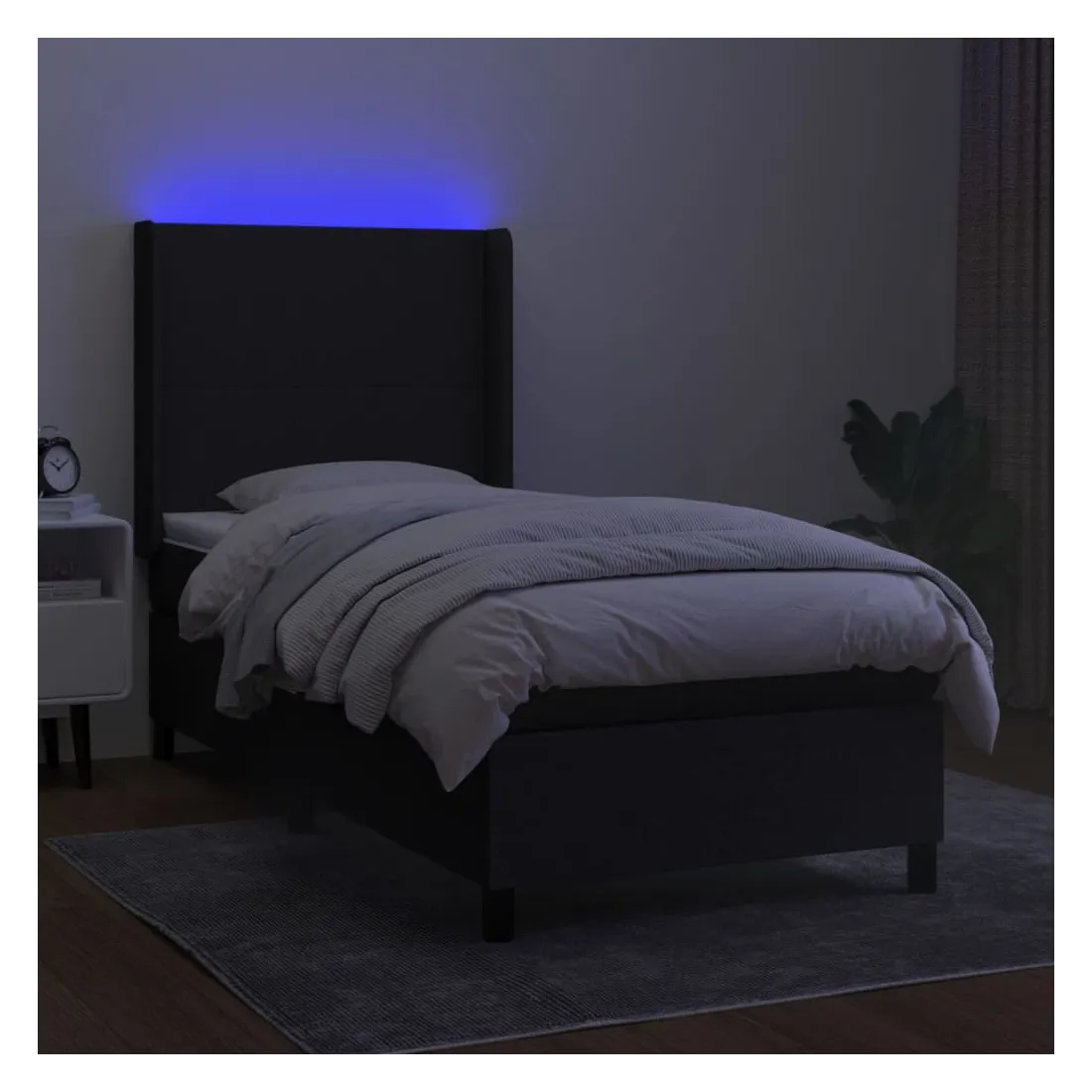 Sommier à lattes de lit matelas et LED Noir 80x200cm Tissu