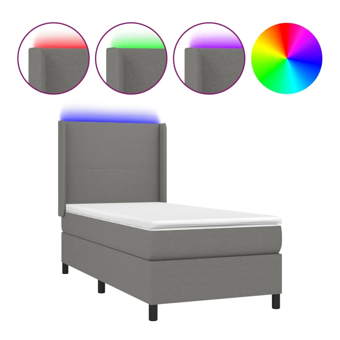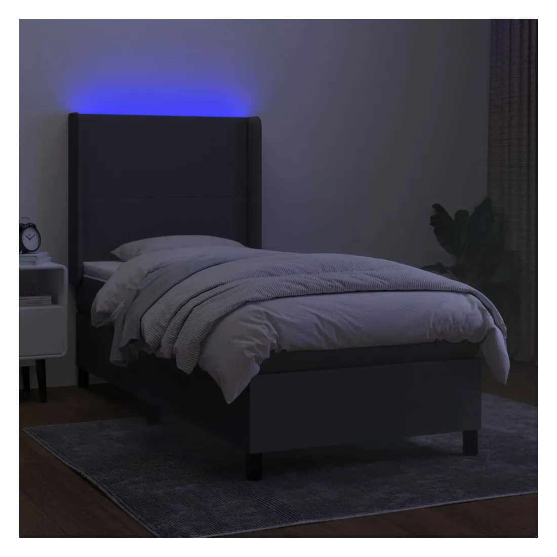 Utilisez ce sommier tapissier avec matelas et LED pour profiter d'un sommeil réparateur ! C'est le point central de votre chambre à coucher. Tissu durable : le tissu présente un aspect simple et épuré, et il est respirant et durable.Tête de lit pratique : la tête de lit est réglable en hauteur selon vos préférences. La tête de lit vous offre un excellent soutien du dos lorsque vous êtes assis dans votre lit pour lire ou regarder la télévision.Bande LED colorée : apportez de l'éclairage dans l'obscurité avec des lumières LED colorées !Matelas à ressorts ensachés : le ressort ensaché individuel intégré est connu pour sa très haute qualité tout en assurant un haut niveau de durabilité et d'adaptabilité. Il peut absorber efficacement le bruit et les chocs causés par les sauts et les rotations.Protège-matelas doux pour la peau : le protège-matelas est recouvert d'un tissu résistant et doux pour la peau, ce qui le rend souple et confortable. Remarque :Pour des raisons d'hygiène, le matelas ne peut pas être retourné si l'emballage est retiré ou ouvert.Seule la partie avec un symbole de ciseaux peut être coupée et seule la partie avec l'USB continuera à fonctionner comme avant.Chaque produit est livré avec un manuel de montage dans la boîte pour un montage facile.Ce produit est doté d'un connecteur USB, mais la source d'alimentation certifiée de USB 5V n'est pas incluse.