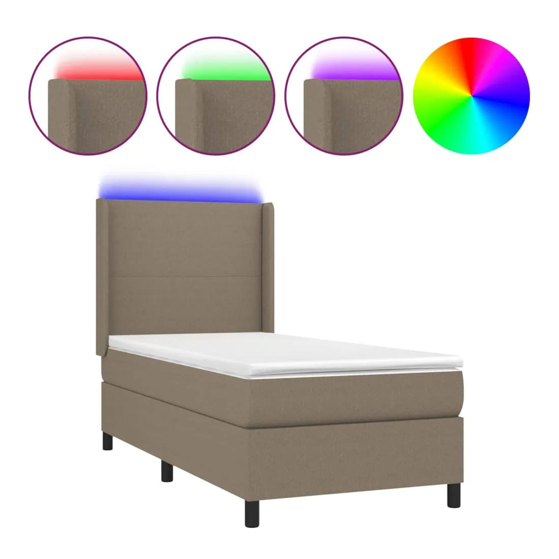 Sommier à lattes de lit matelas et LED Taupe 90x190 cm Tissu