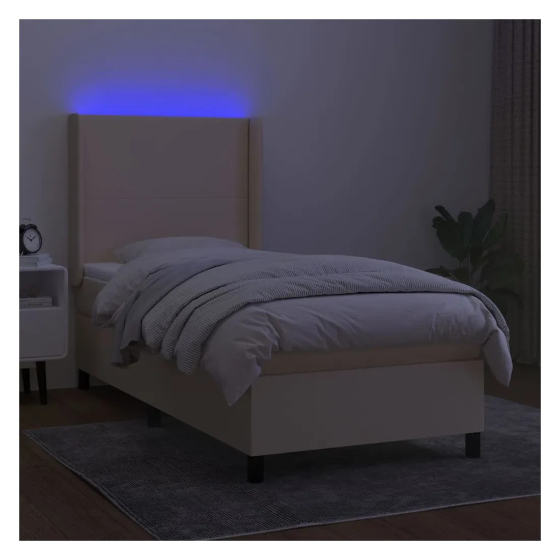 Utilisez ce sommier tapissier avec matelas et LED pour profiter d'un sommeil réparateur ! C'est le point central de votre chambre à coucher. Tissu durable : le tissu présente un aspect simple et épuré, et il est respirant et durable.Tête de lit pratique : la tête de lit est réglable en hauteur selon vos préférences. La tête de lit vous offre un excellent soutien du dos lorsque vous êtes assis dans votre lit pour lire ou regarder la télévision.Bande LED colorée : apportez de l'éclairage dans l'obscurité avec des lumières LED colorées !Matelas à ressorts ensachés : le ressort ensaché individuel intégré est connu pour sa très haute qualité tout en assurant un haut niveau de durabilité et d'adaptabilité. Il peut absorber efficacement le bruit et les chocs causés par les sauts et les rotations.Protège-matelas doux pour la peau : le protège-matelas est recouvert d'un tissu résistant et doux pour la peau, ce qui le rend souple et confortable. Remarque :Pour des raisons d'hygiène, le matelas ne peut pas être retourné si l'emballage est retiré ou ouvert.Seule la partie avec un symbole de ciseaux peut être coupée et seule la partie avec l'USB continuera à fonctionner comme avant.Chaque produit est livré avec un manuel de montage dans la boîte pour un montage facile.Ce produit est doté d'un connecteur USB, mais la source d'alimentation certifiée de USB 5V n'est pas incluse.