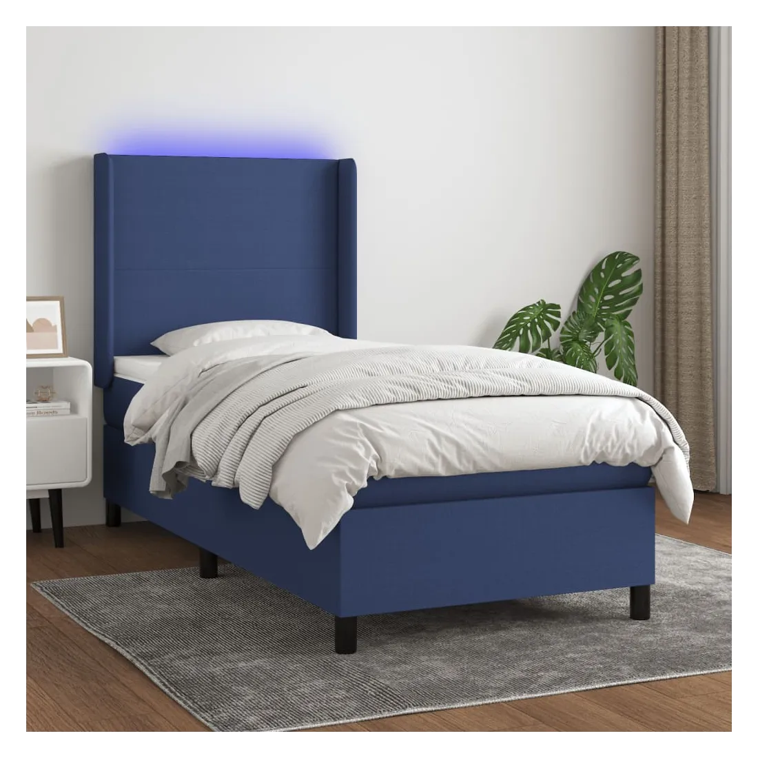 Utilisez ce sommier tapissier avec matelas et LED pour profiter d'un sommeil réparateur ! C'est le point central de votre chambre à coucher. Tissu durable : le tissu présente un aspect simple et épuré, et il est respirant et durable.Tête de lit pratique : la tête de lit est réglable en hauteur selon vos préférences. La tête de lit vous offre un excellent soutien du dos lorsque vous êtes assis dans votre lit pour lire ou regarder la télévision.Bande LED colorée : apportez de l'éclairage dans l'obscurité avec des lumières LED colorées !Matelas à ressorts ensachés : le ressort ensaché individuel intégré est connu pour sa très haute qualité tout en assurant un haut niveau de durabilité et d'adaptabilité. Il peut absorber efficacement le bruit et les chocs causés par les sauts et les rotations.Protège-matelas doux pour la peau : le protège-matelas est recouvert d'un tissu résistant et doux pour la peau, ce qui le rend souple et confortable. Remarque :Pour des raisons d'hygiène, le matelas ne peut pas être retourné si l'emballage est retiré ou ouvert.Seule la partie avec un symbole de ciseaux peut être coupée et seule la partie avec l'USB continuera à fonctionner comme avant.Chaque produit est livré avec un manuel de montage dans la boîte pour un montage facile.Ce produit est doté d'un connecteur USB, mais la source d'alimentation certifiée de USB 5V n'est pas incluse.
