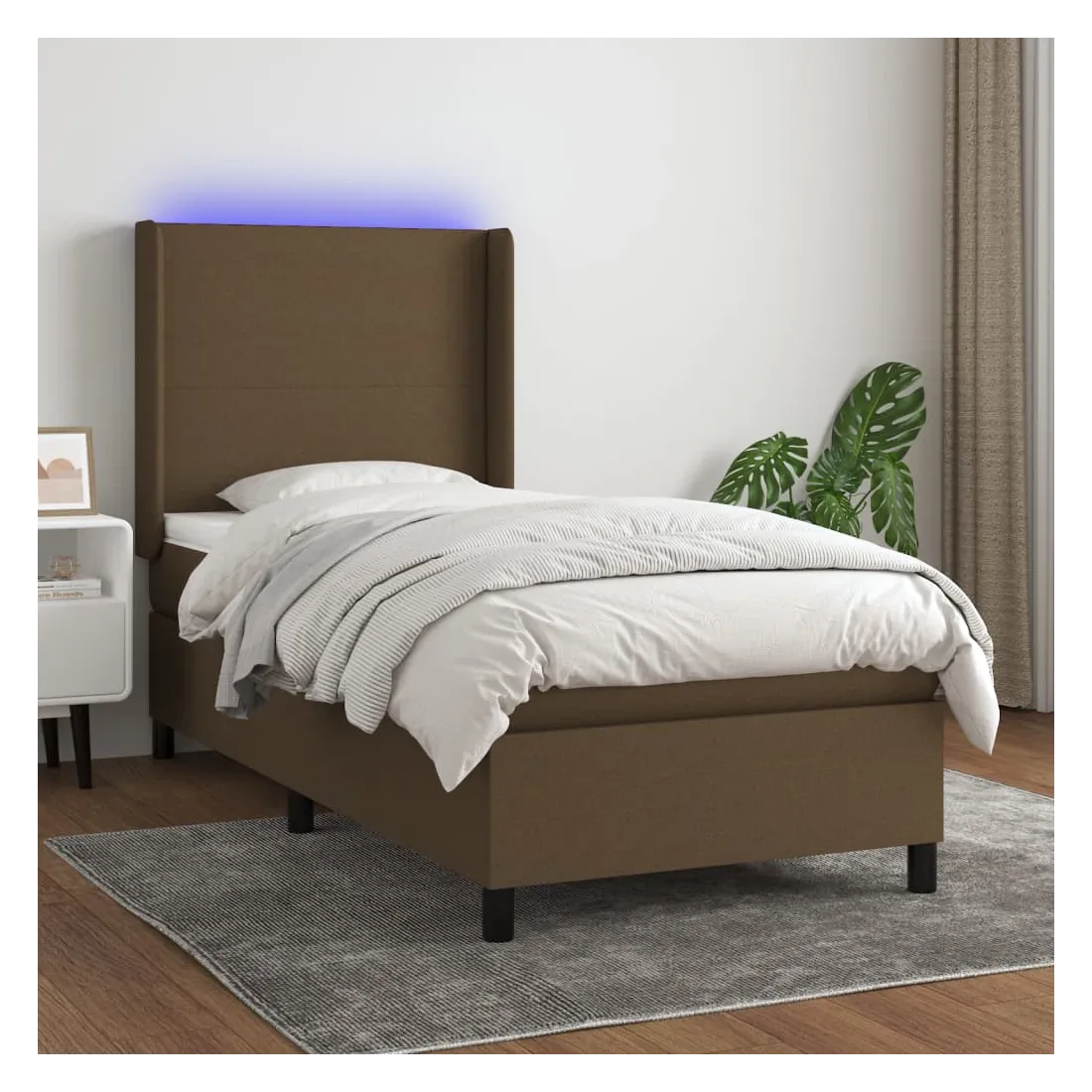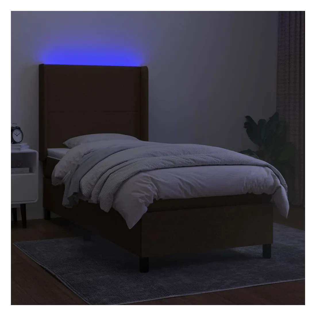 Utilisez ce sommier tapissier avec matelas et LED pour profiter d'un sommeil réparateur ! C'est le point central de votre chambre à coucher. Tissu durable : le tissu présente un aspect simple et épuré, et il est respirant et durable.Tête de lit pratique : la tête de lit est réglable en hauteur selon vos préférences. La tête de lit vous offre un excellent soutien du dos lorsque vous êtes assis dans votre lit pour lire ou regarder la télévision.Bande LED colorée : apportez de l'éclairage dans l'obscurité avec des lumières LED colorées !Matelas à ressorts ensachés : le ressort ensaché individuel intégré est connu pour sa très haute qualité tout en assurant un haut niveau de durabilité et d'adaptabilité. Il peut absorber efficacement le bruit et les chocs causés par les sauts et les rotations.Protège-matelas doux pour la peau : le protège-matelas est recouvert d'un tissu résistant et doux pour la peau, ce qui le rend souple et confortable. Remarque :Pour des raisons d'hygiène, le matelas ne peut pas être retourné si l'emballage est retiré ou ouvert.Seule la partie avec un symbole de ciseaux peut être coupée et seule la partie avec l'USB continuera à fonctionner comme avant.Chaque produit est livré avec un manuel de montage dans la boîte pour un montage facile.Ce produit est doté d'un connecteur USB, mais la source d'alimentation certifiée de USB 5V n'est pas incluse.