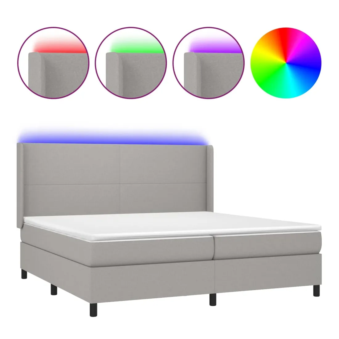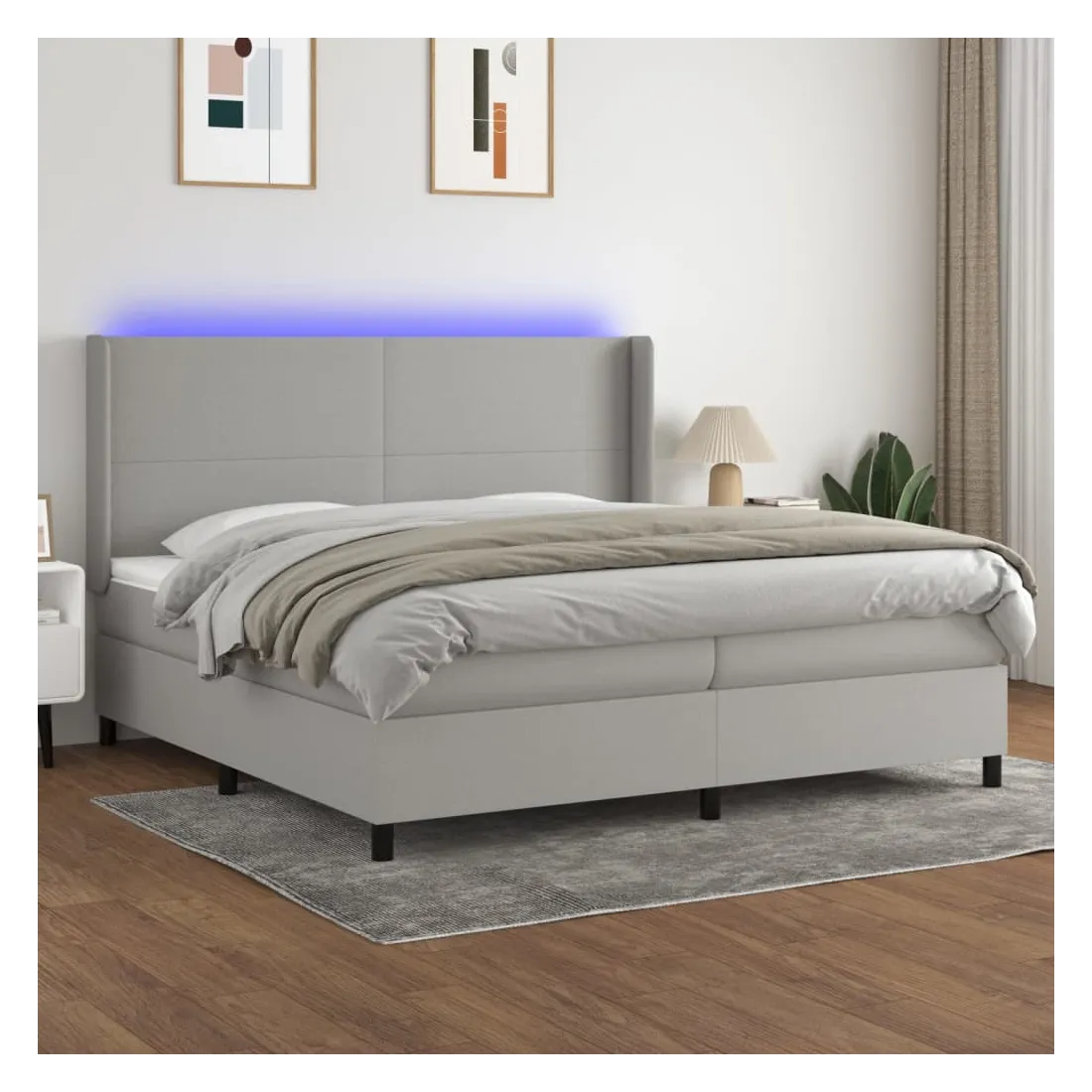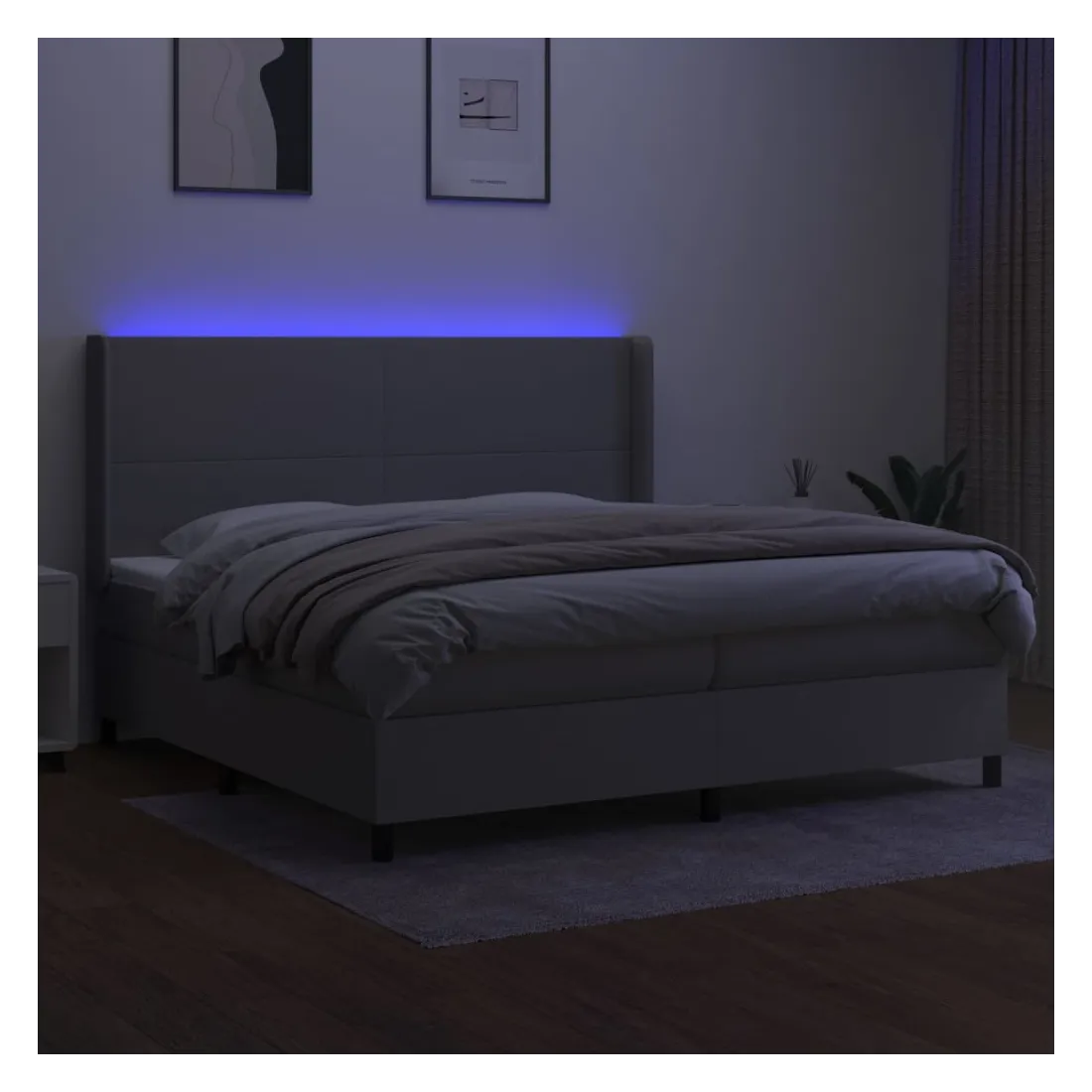 Utilisez ce sommier tapissier avec matelas et LED pour profiter d'un sommeil réparateur ! C'est le point central de votre chambre à coucher. Tissu durable : le tissu présente un aspect simple et épuré, et il est respirant et durable. Tête de lit pratique : la tête de lit est réglable en hauteur selon vos préférences. La tête de lit vous offre un excellent soutien du dos lorsque vous êtes assis dans votre lit pour lire ou regarder la télévision. Bande LED colorée : apportez de l'éclairage dans l'obscurité avec des lumières LED colorées ! Matelas à ressorts ensachés : le ressort ensaché individuel intégré est connu pour sa très haute qualité tout en assurant un haut niveau de durabilité et d'adaptabilité. Il peut absorber efficacement le bruit et les chocs causés par les sauts et les rot