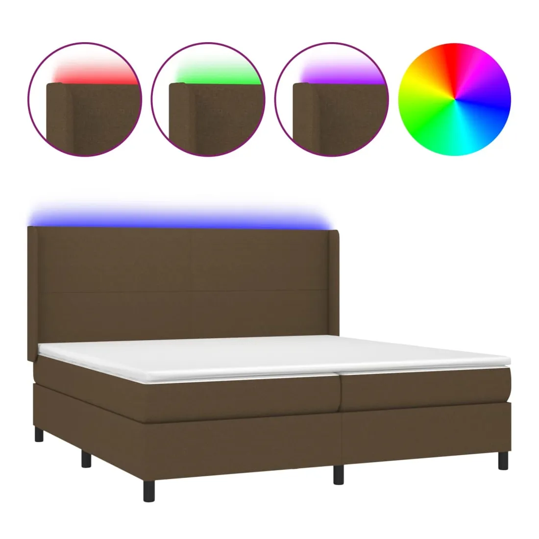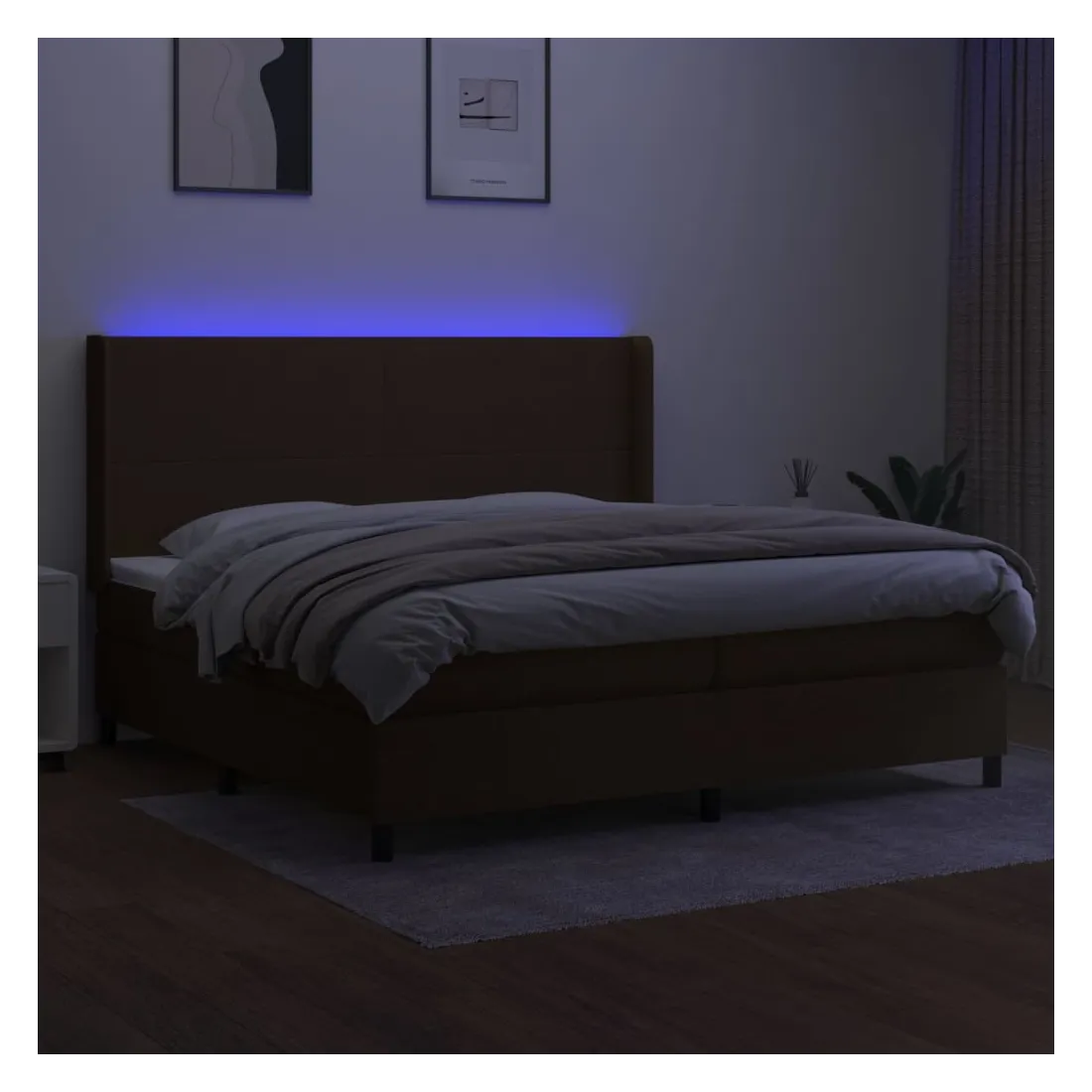 Utilisez ce sommier tapissier avec matelas et LED pour profiter d'un sommeil réparateur ! C'est le point central de votre chambre à coucher. Tissu durable : le tissu présente un aspect simple et épuré, et il est respirant et durable.Tête de lit pratique : la tête de lit est réglable en hauteur selon vos préférences. La tête de lit vous offre un excellent soutien du dos lorsque vous êtes assis dans votre lit pour lire ou regarder la télévision.Bande LED colorée : apportez de l'éclairage dans l'obscurité avec des lumières LED colorées !Matelas à ressorts ensachés : le ressort ensaché individuel intégré est connu pour sa très haute qualité tout en assurant un haut niveau de durabilité et d'adaptabilité. Il peut absorber efficacement le bruit et les chocs causés par les sauts et les rotations.Protège-matelas doux pour la peau : le protège-matelas est recouvert d'un tissu résistant et doux pour la peau, ce qui le rend souple et confortable. Remarque :Pour des raisons d'hygiène, le matelas ne peut pas être retourné si l'emballage est retiré ou ouvert.Seule la partie avec un symbole de ciseaux peut être coupée et seule la partie avec l'USB continuera à fonctionner comme avant.Chaque produit est livré avec un manuel de montage dans la boîte pour un montage facile.Ce produit est doté d'un connecteur USB, mais la source d'alimentation certifiée de USB 5V n'est pas incluse.