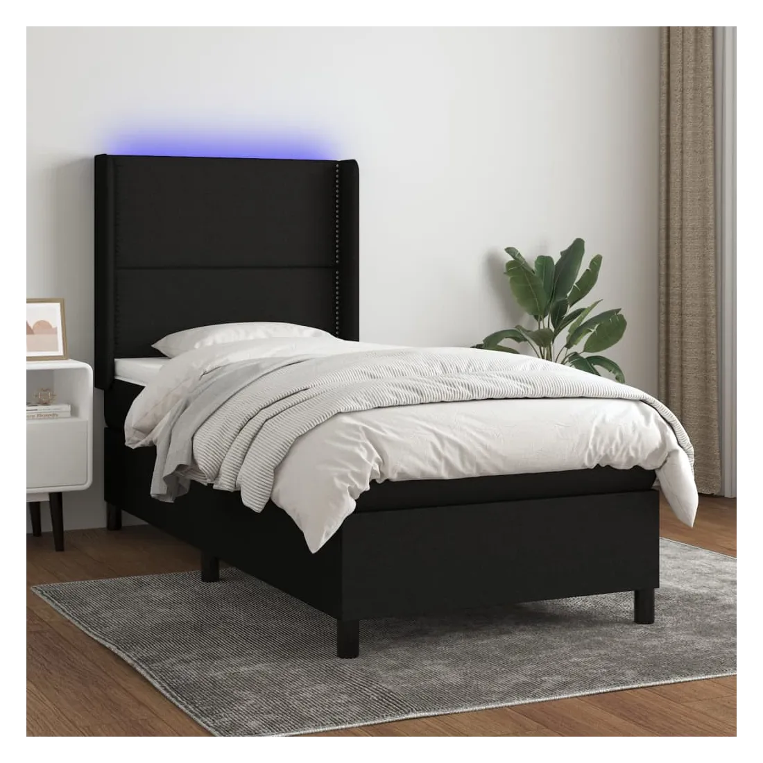 vidaXLUtilisez ce sommier tapissier avec matelas et LED pour profiter d'un sommeil réparateur ! C'est le point central de votre chambre à coucher. Tissu durable : le tissu présente un aspect simple et épuré, et il est respirant et durable.Tête de lit pratique : la tête de lit est réglable en hauteur selon vos préférences. La tête de lit vous offre un excellent soutien du dos lorsque vous êtes assis dans votre lit pour lire ou regarder la télévision.Bande LED colorée : apportez de l'éclairage dans l'obscurité avec des lumières LED colorées !Matelas à ressorts ensachés : le ressort ensaché individuel intégré est connu pour sa très haute qualité tout en assurant un haut niveau de durabilité et d'adaptabilité. Il peut absorber efficacement le bruit et les chocs causés par les sauts et les rotations.Protège-matelas doux pour la peau : le protège-matelas est recouvert d'un tissu résistant et doux pour la peau, ce qui le rend souple et confortable. Remarque :Pour des raisons d'hygiène, le matelas ne peut pas être retourné si l'emballage est retiré ou ouvert.Seule la partie avec un symbole de ciseaux peut être coupée et seule la partie avec l'USB continuera à fonctionner comme avant.Chaque produit est livré avec un manuel de montage dans la boîte pour un montage facile.Ce produit est doté d'un connecteur USB, mais la source d'alimentation certifiée de USB 5V n'est pas incluse.