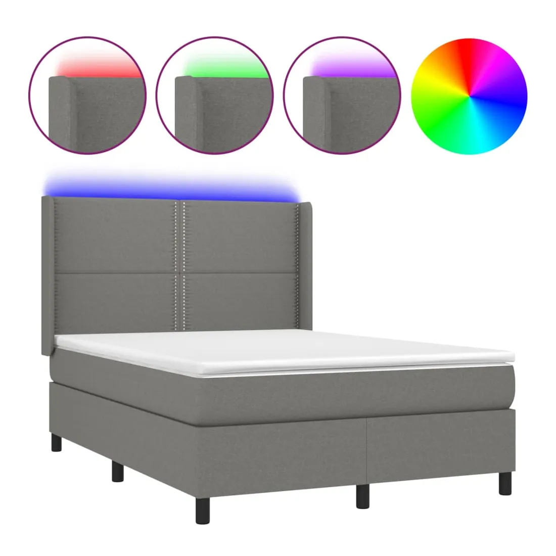 Sommier à lattes de lit matelas LED Gris foncé 140x190 cm Tissu