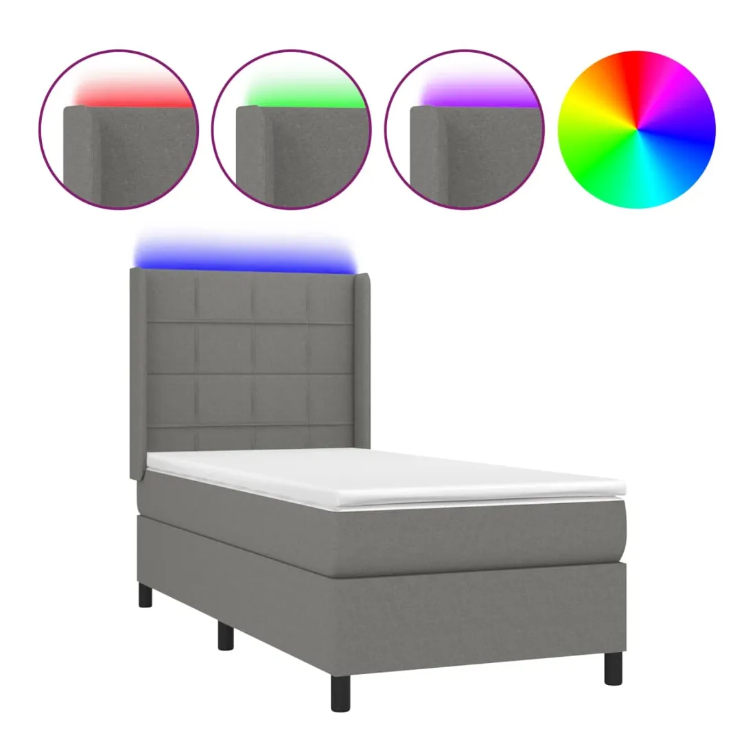 Utilisez ce sommier tapissier avec matelas et LED pour profiter d'un sommeil réparateur ! C'est le point central de votre chambre à coucher. Tissu durable : le tissu présente un aspect simple et épuré, et il est respirant et durable.Tête de lit pratique : la tête de lit est réglable en hauteur selon vos préférences. La tête de lit vous offre un excellent soutien du dos lorsque vous êtes assis dans votre lit pour lire ou regarder la télévision.Bande LED colorée : apportez de l'éclairage dans l'obscurité avec des lumières LED colorées !Matelas à ressorts ensachés : le ressort ensaché individuel intégré est connu pour sa très haute qualité tout en assurant un haut niveau de durabilité et d'adaptabilité. Il peut absorber efficacement le bruit et les chocs causés par les sauts et les rotations.Protège-matelas doux pour la peau : le protège-matelas est recouvert d'un tissu résistant et doux pour la peau, ce qui le rend souple et confortable. Remarque :Pour des raisons d'hygiène, le matelas ne peut pas être retourné si l'emballage est retiré ou ouvert.Seule la partie avec un symbole de ciseaux peut être coupée et seule la partie avec l'USB continuera à fonctionner comme avant.Chaque produit est livré avec un manuel de montage dans la boîte pour un montage facile.Ce produit est doté d'un connecteur USB, mais la source d'alimentation certifiée de USB 5V n'est pas incluse.