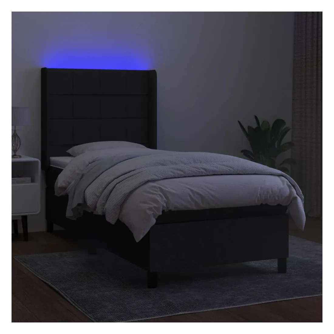 Utilisez ce sommier tapissier avec matelas et LED pour profiter d'un sommeil réparateur ! C'est le point central de votre chambre à coucher. Tissu durable : le tissu présente un aspect simple et épuré, et il est respirant et durable.Tête de lit pratique : la tête de lit est réglable en hauteur selon vos préférences. La tête de lit vous offre un excellent soutien du dos lorsque vous êtes assis dans votre lit pour lire ou regarder la télévision.Bande LED colorée : apportez de l'éclairage dans l'obscurité avec des lumières LED colorées !Matelas à ressorts ensachés : le ressort ensaché individuel intégré est connu pour sa très haute qualité tout en assurant un haut niveau de durabilité et d'adaptabilité. Il peut absorber efficacement le bruit et les chocs causés par les sauts et les rotations.Protège-matelas doux pour la peau : le protège-matelas est recouvert d'un tissu résistant et doux pour la peau, ce qui le rend souple et confortable. Remarque :Pour des raisons d'hygiène, le matelas ne peut pas être retourné si l'emballage est retiré ou ouvert.Seule la partie avec un symbole de ciseaux peut être coupée et seule la partie avec l'USB continuera à fonctionner comme avant.Chaque produit est livré avec un manuel de montage dans la boîte pour un montage facile.Ce produit est doté d'un connecteur USB, mais la source d'alimentation certifiée de USB 5V n'est pas incluse.