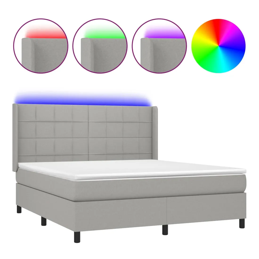 Utilisez ce sommier tapissier avec matelas et LED pour profiter d'un sommeil réparateur ! C'est le point central de votre chambre à coucher. Tissu durable : le tissu présente un aspect simple et épuré, et il est respirant et durable.Tête de lit pratique : la tête de lit est réglable en hauteur selon vos préférences. La tête de lit vous offre un excellent soutien du dos lorsque vous êtes assis dans votre lit pour lire ou regarder la télévision.Bande LED colorée : apportez de l'éclairage dans l'obscurité avec des lumières LED colorées !Matelas à ressorts ensachés : le ressort ensaché individuel intégré est connu pour sa très haute qualité tout en assurant un haut niveau de durabilité et d'adaptabilité. Il peut absorber efficacement le bruit et les chocs causés par les sauts et les rotations.Protège-matelas doux pour la peau : le protège-matelas est recouvert d'un tissu résistant et doux pour la peau, ce qui le rend souple et confortable. Remarque :Pour des raisons d'hygiène, le matelas ne peut pas être retourné si l'emballage est retiré ou ouvert.Seule la partie avec un symbole de ciseaux peut être coupée et seule la partie avec l'USB continuera à fonctionner comme avant.Chaque produit est livré avec un manuel de montage dans la boîte pour un montage facile.Ce produit est doté d'un connecteur USB, mais la source d'alimentation certifiée de USB 5V n'est pas incluse.
