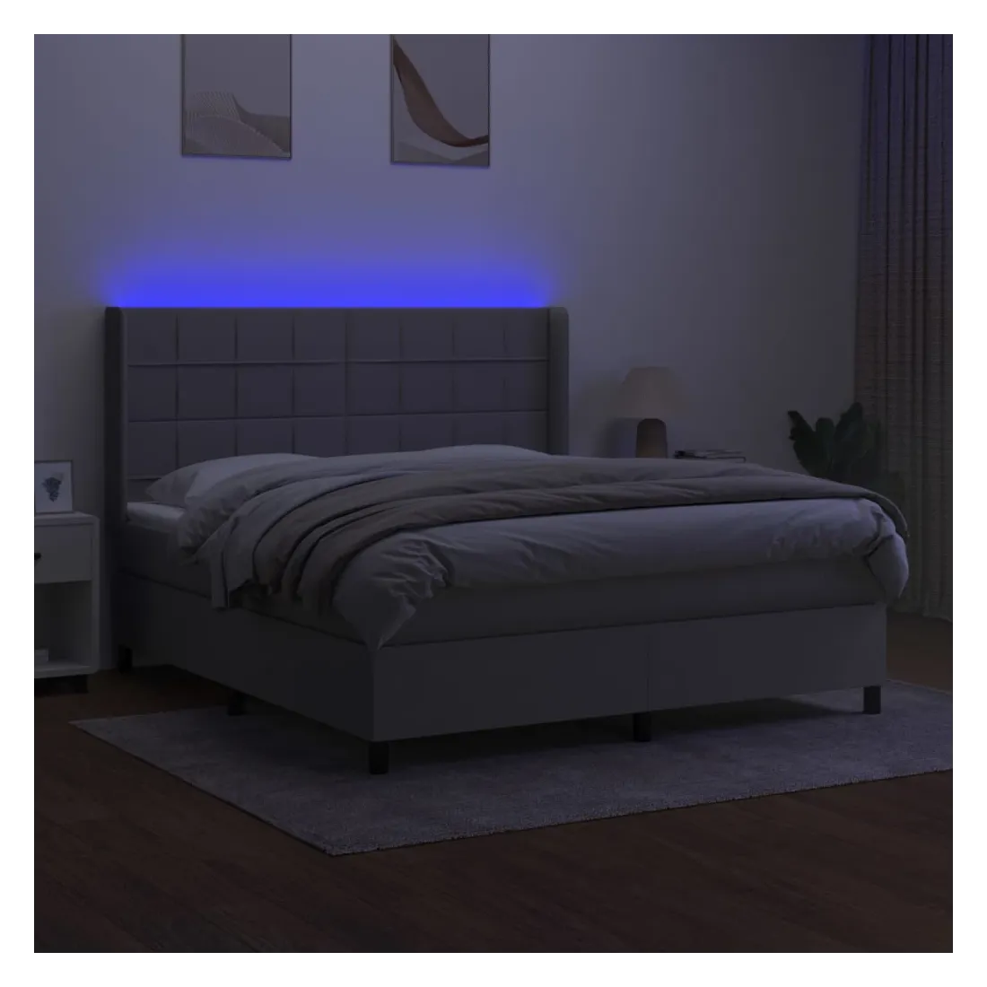 Utilisez ce sommier tapissier avec matelas et LED pour profiter d'un sommeil réparateur ! C'est le point central de votre chambre à coucher. Tissu durable : le tissu présente un aspect simple et épuré, et il est respirant et durable.Tête de lit pratique : la tête de lit est réglable en hauteur selon vos préférences. La tête de lit vous offre un excellent soutien du dos lorsque vous êtes assis dans votre lit pour lire ou regarder la télévision.Bande LED colorée : apportez de l'éclairage dans l'obscurité avec des lumières LED colorées !Matelas à ressorts ensachés : le ressort ensaché individuel intégré est connu pour sa très haute qualité tout en assurant un haut niveau de durabilité et d'adaptabilité. Il peut absorber efficacement le bruit et les chocs causés par les sauts et les rotations.Protège-matelas doux pour la peau : le protège-matelas est recouvert d'un tissu résistant et doux pour la peau, ce qui le rend souple et confortable. Remarque :Pour des raisons d'hygiène, le matelas ne peut pas être retourné si l'emballage est retiré ou ouvert.Seule la partie avec un symbole de ciseaux peut être coupée et seule la partie avec l'USB continuera à fonctionner comme avant.Chaque produit est livré avec un manuel de montage dans la boîte pour un montage facile.Ce produit est doté d'un connecteur USB, mais la source d'alimentation certifiée de USB 5V n'est pas incluse.
