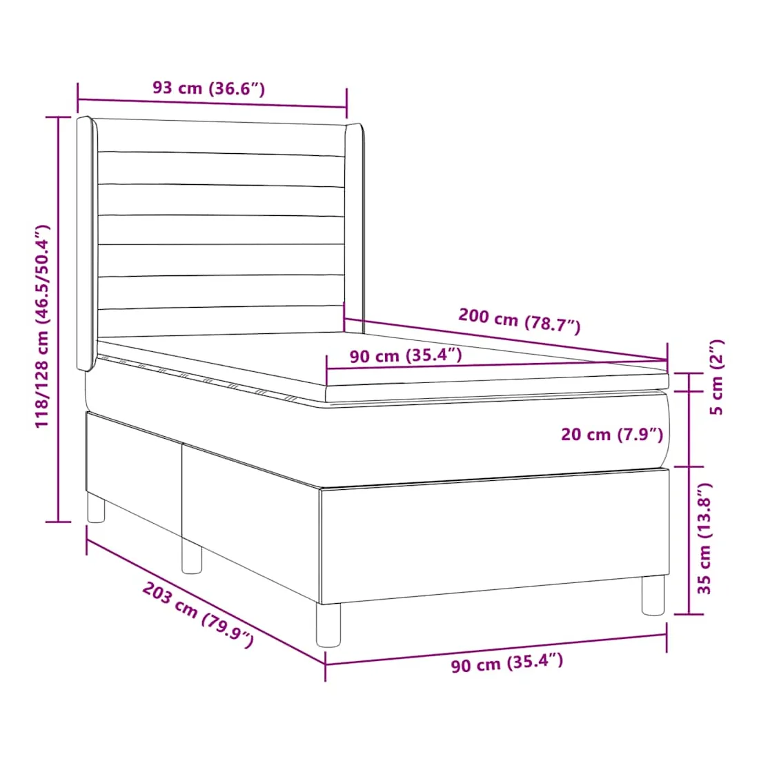 • Dimensions totales : 203 x 93 x 118/128 cm (L x l x H)