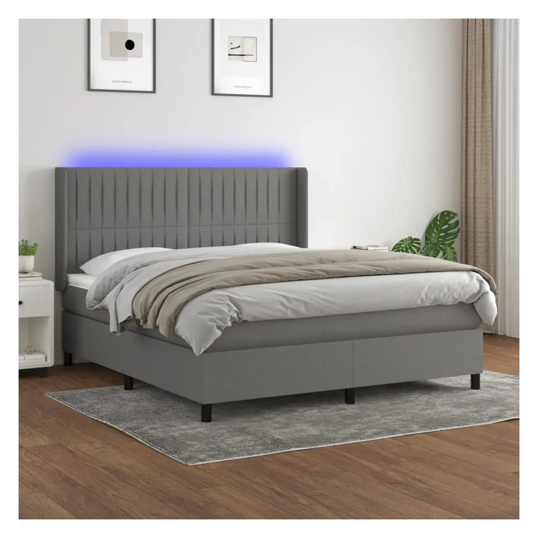Utilisez ce sommier tapissier avec matelas et LED pour profiter d'un sommeil réparateur ! C'est le point central de votre chambre à coucher. Tissu durable : le tissu présente un aspect simple et épuré, et il est respirant et durable. Tête de lit pratique : la tête de lit est réglable en hauteur selon vos préférences. La tête de lit vous offre un excellent soutien du dos lorsque vous êtes assis dans votre lit pour lire ou regarder la télévision. Bande LED colorée : apportez de l'éclairage dans l'obscurité avec des lumières LED colorées ! Matelas à ressorts ensachés : le ressort ensaché individuel intégré est connu pour sa très haute qualité tout en assurant un haut niveau de durabilité et d'adaptabilité. Il peut absorber efficacement le bruit et les chocs causés par les sauts et les rot