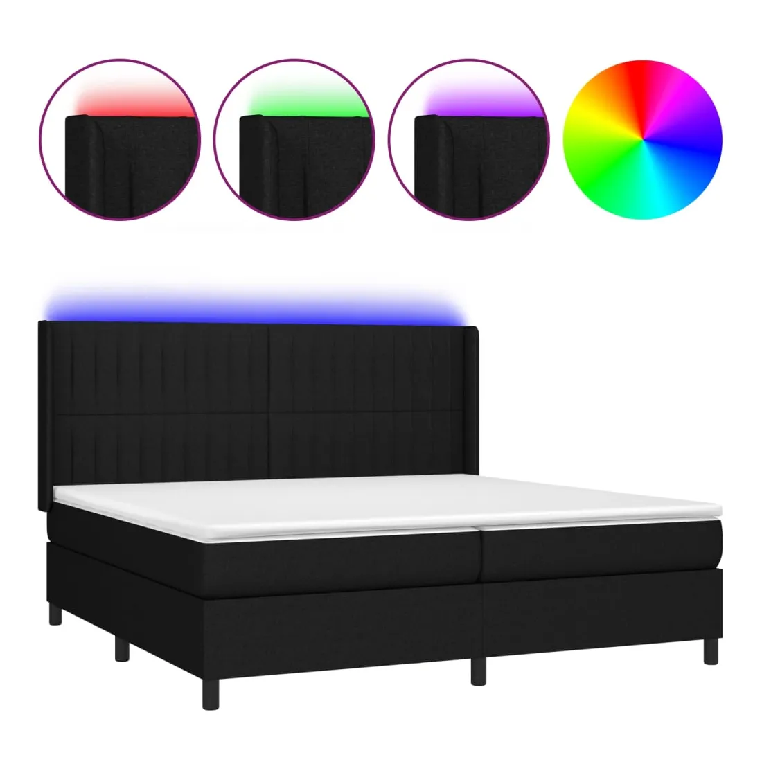 Utilisez ce sommier tapissier avec matelas et LED pour profiter d'un sommeil réparateur ! C'est le point central de votre chambre à coucher. Tissu durable : le tissu présente un aspect simple et épuré, et il est respirant et durable.Tête de lit pratique : la tête de lit est réglable en hauteur selon vos préférences. La tête de lit vous offre un excellent soutien du dos lorsque vous êtes assis dans votre lit pour lire ou regarder la télévision.Bande LED colorée : apportez de l'éclairage dans l'obscurité avec des lumières LED colorées !Matelas à ressorts ensachés : le ressort ensaché individuel intégré est connu pour sa très haute qualité tout en assurant un haut niveau de durabilité et d'adaptabilité. Il peut absorber efficacement le bruit et les chocs causés par les sauts et les rotations.Protège-matelas doux pour la peau : le protège-matelas est recouvert d'un tissu résistant et doux pour la peau, ce qui le rend souple et confortable. Remarque :Pour des raisons d'hygiène, le matelas ne peut pas être retourné si l'emballage est retiré ou ouvert.Seule la partie avec un symbole de ciseaux peut être coupée et seule la partie avec l'USB continuera à fonctionner comme avant.Chaque produit est livré avec un manuel de montage dans la boîte pour un montage facile.Ce produit est doté d'un connecteur USB, mais la source d'alimentation certifiée de USB 5V n'est pas incluse.