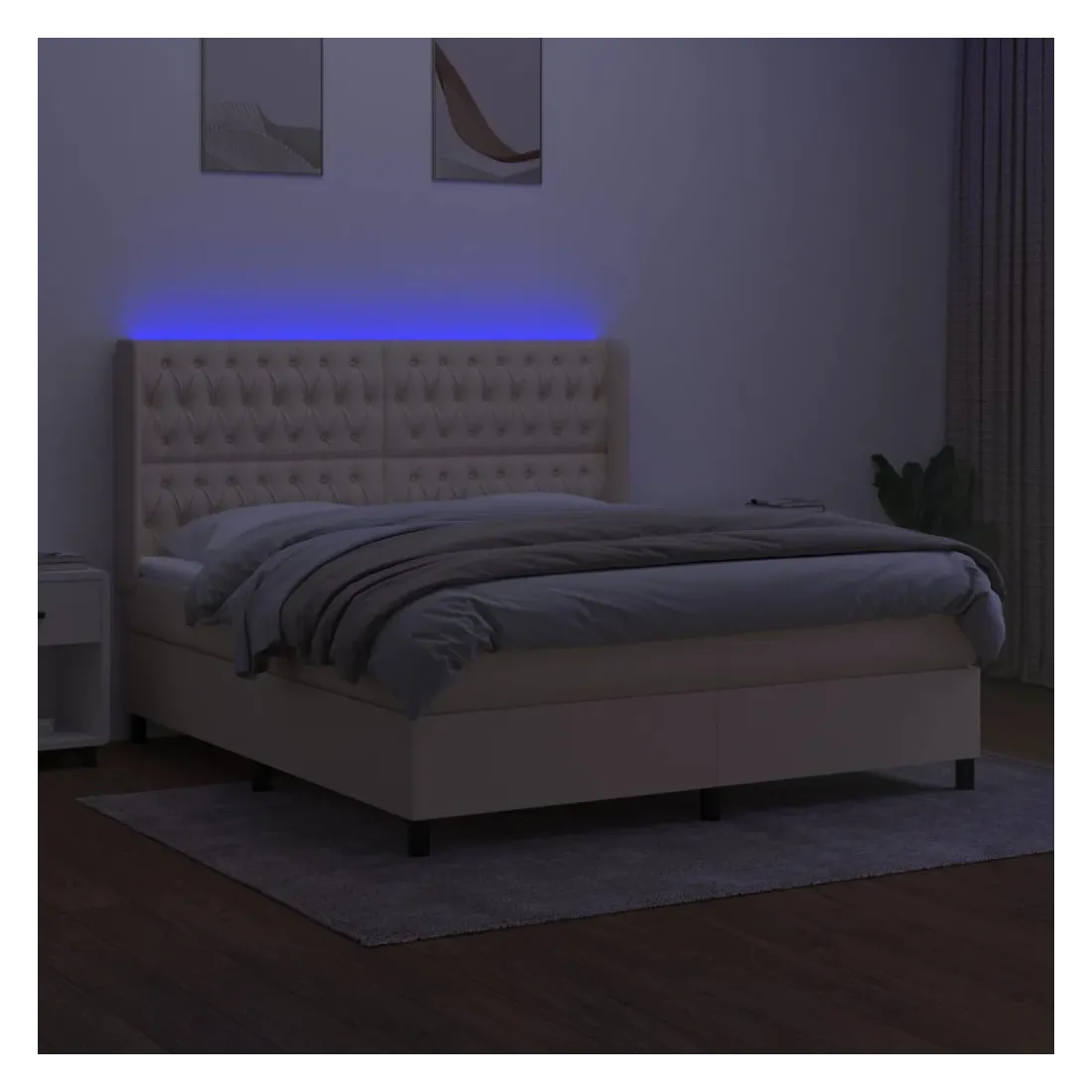 Utilisez ce sommier tapissier avec matelas et LED pour profiter d'un sommeil réparateur ! C'est le point central de votre chambre à coucher. Tissu durable : le tissu présente un aspect simple et épuré, et il est respirant et durable.Tête de lit pratique : la tête de lit est réglable en hauteur selon vos préférences. La tête de lit vous offre un excellent soutien du dos lorsque vous êtes assis dans votre lit pour lire ou regarder la télévision.Bande LED colorée : apportez de l'éclairage dans l'obscurité avec des lumières LED colorées !Matelas à ressorts ensachés : le ressort ensaché individuel intégré est connu pour sa très haute qualité tout en assurant un haut niveau de durabilité et d'adaptabilité. Il peut absorber efficacement le bruit et les chocs causés par les sauts et les rotations.Protège-matelas doux pour la peau : le protège-matelas est recouvert d'un tissu résistant et doux pour la peau, ce qui le rend souple et confortable. Remarque :Pour des raisons d'hygiène, le matelas ne peut pas être retourné si l'emballage est retiré ou ouvert.Seule la partie avec un symbole de ciseaux peut être coupée et seule la partie avec l'USB continuera à fonctionner comme avant.Chaque produit est livré avec un manuel de montage dans la boîte pour un montage facile.Ce produit est doté d'un connecteur USB, mais la source d'alimentation certifiée de USB 5V n'est pas incluse.