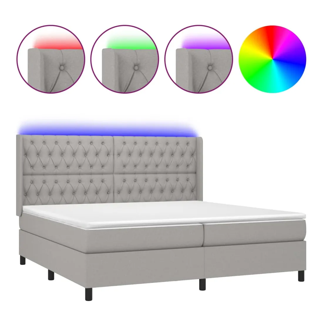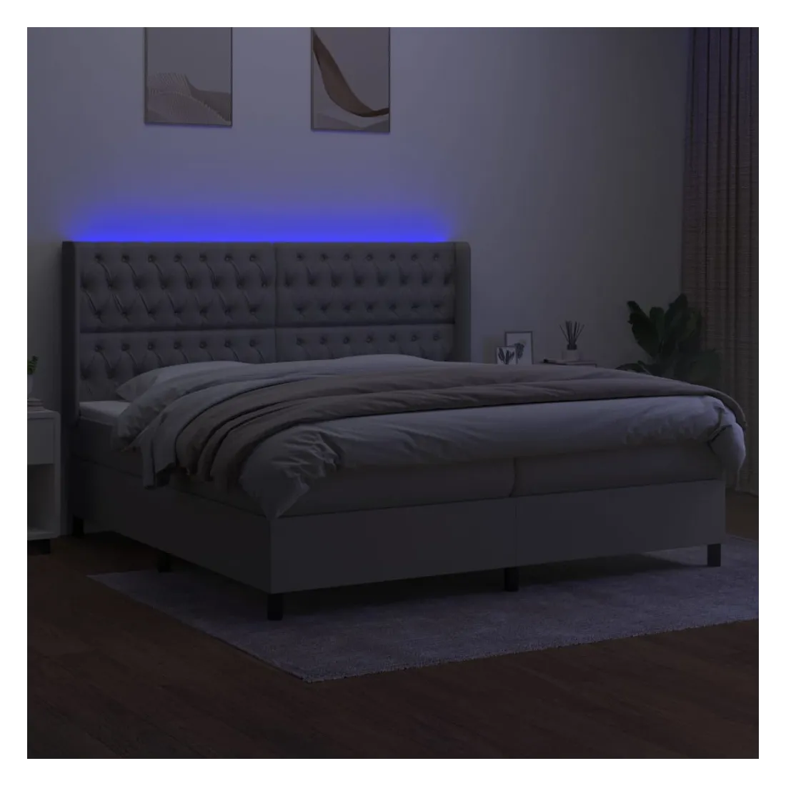 Utilisez ce sommier tapissier avec matelas et LED pour profiter d'un sommeil réparateur ! C'est le point central de votre chambre à coucher. Tissu durable : le tissu présente un aspect simple et épuré, et il est respirant et durable. Tête de lit pratique : la tête de lit est réglable en hauteur selon vos préférences. La tête de lit vous offre un excellent soutien du dos lorsque vous êtes assis dans votre lit pour lire ou regarder la télévision. Bande LED colorée : apportez de l'éclairage dans l'obscurité avec des lumières LED colorées ! Matelas à ressorts ensachés : le ressort ensaché individuel intégré est connu pour sa très haute qualité tout en assurant un haut niveau de durabilité et d'adaptabilité. Il peut absorber efficacement le bruit et les chocs causés par les sauts et les rot