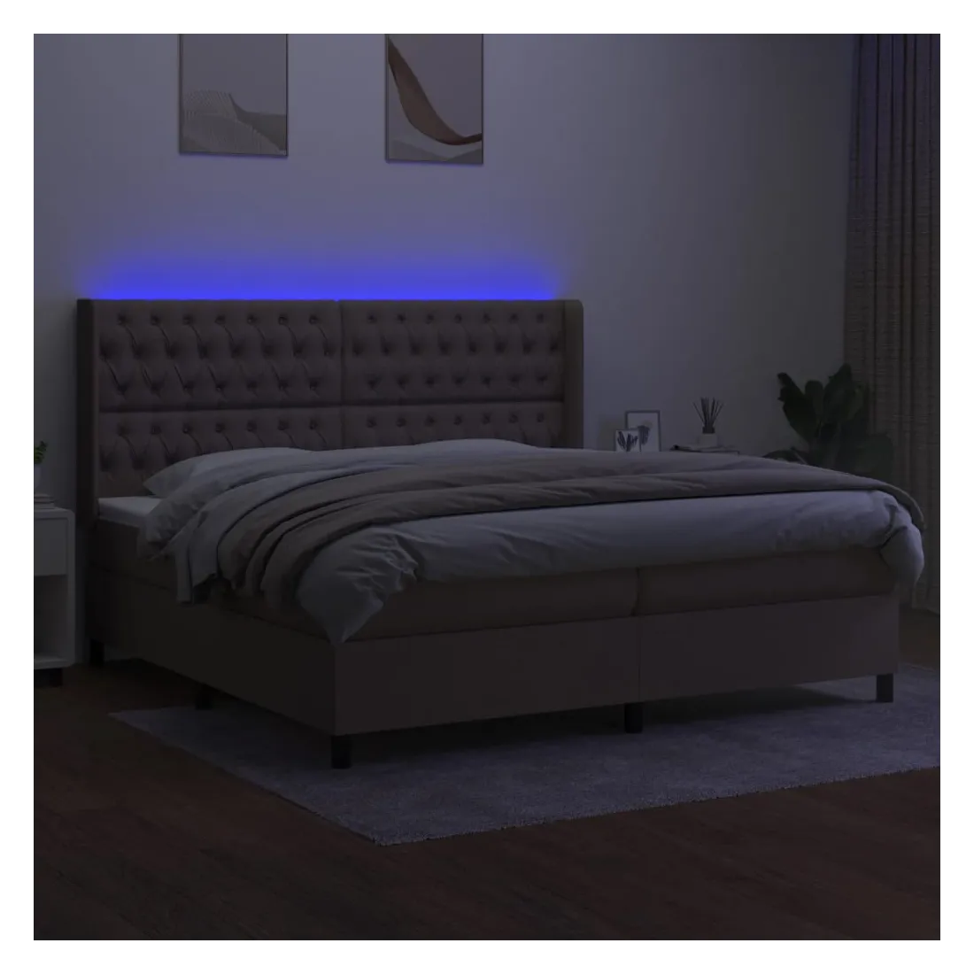 Utilisez ce sommier tapissier avec matelas et LED pour profiter d'un sommeil réparateur ! C'est le point central de votre chambre à coucher. Tissu durable : le tissu présente un aspect simple et épuré, et il est respirant et durable.Tête de lit pratique : la tête de lit est réglable en hauteur selon vos préférences. La tête de lit vous offre un excellent soutien du dos lorsque vous êtes assis dans votre lit pour lire ou regarder la télévision.Bande LED colorée : apportez de l'éclairage dans l'obscurité avec des lumières LED colorées !Matelas à ressorts ensachés : le ressort ensaché individuel intégré est connu pour sa très haute qualité tout en assurant un haut niveau de durabilité et d'adaptabilité. Il peut absorber efficacement le bruit et les chocs causés par les sauts et les rotations.Protège-matelas doux pour la peau : le protège-matelas est recouvert d'un tissu résistant et doux pour la peau, ce qui le rend souple et confortable. Remarque :Pour des raisons d'hygiène, le matelas ne peut pas être retourné si l'emballage est retiré ou ouvert.Seule la partie avec un symbole de ciseaux peut être coupée et seule la partie avec l'USB continuera à fonctionner comme avant.Chaque produit est livré avec un manuel de montage dans la boîte pour un montage facile.Ce produit est doté d'un connecteur USB, mais la source d'alimentation certifiée de USB 5V n'est pas incluse.