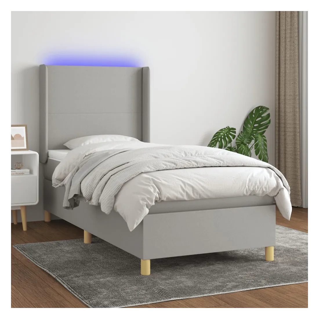 Sommier à lattes de lit matelas LED Gris clair 100x200 cm Tissu