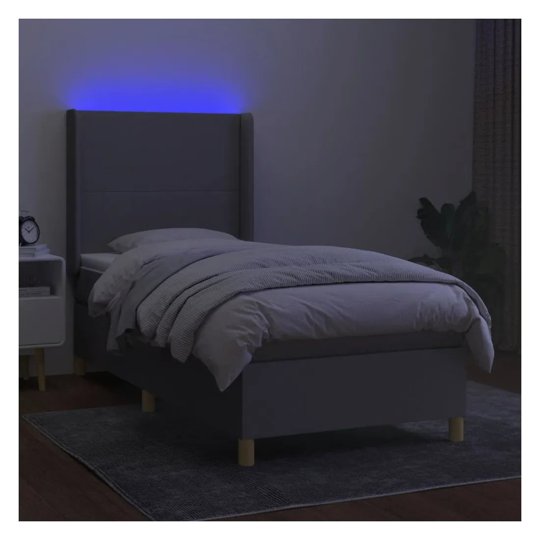 Utilisez ce sommier tapissier avec matelas et LED pour profiter d'un sommeil réparateur ! C'est le point central de votre chambre à coucher. Tissu durable : le tissu présente un aspect simple et épuré, et il est respirant et durable. Tête de lit pratique : la tête de lit est réglable en hauteur selon vos préférences. La tête de lit vous offre un excellent soutien du dos lorsque vous êtes assis dans votre lit pour lire ou regarder la télévision. Bande LED colorée : apportez de l'éclairage dans l'obscurité avec des lumières LED colorées ! Matelas à ressorts ensachés : le ressort ensaché individuel intégré est connu pour sa très haute qualité tout en assurant un haut niveau de durabilité et d'adaptabilité. Il peut absorber efficacement le bruit et les chocs causés par les sauts et les rot