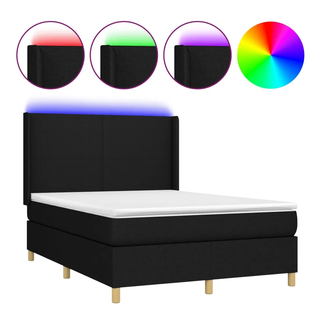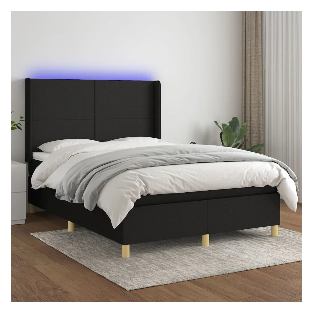 Sommier à lattes de lit matelas et LED Noir 140x190 cm Tissu