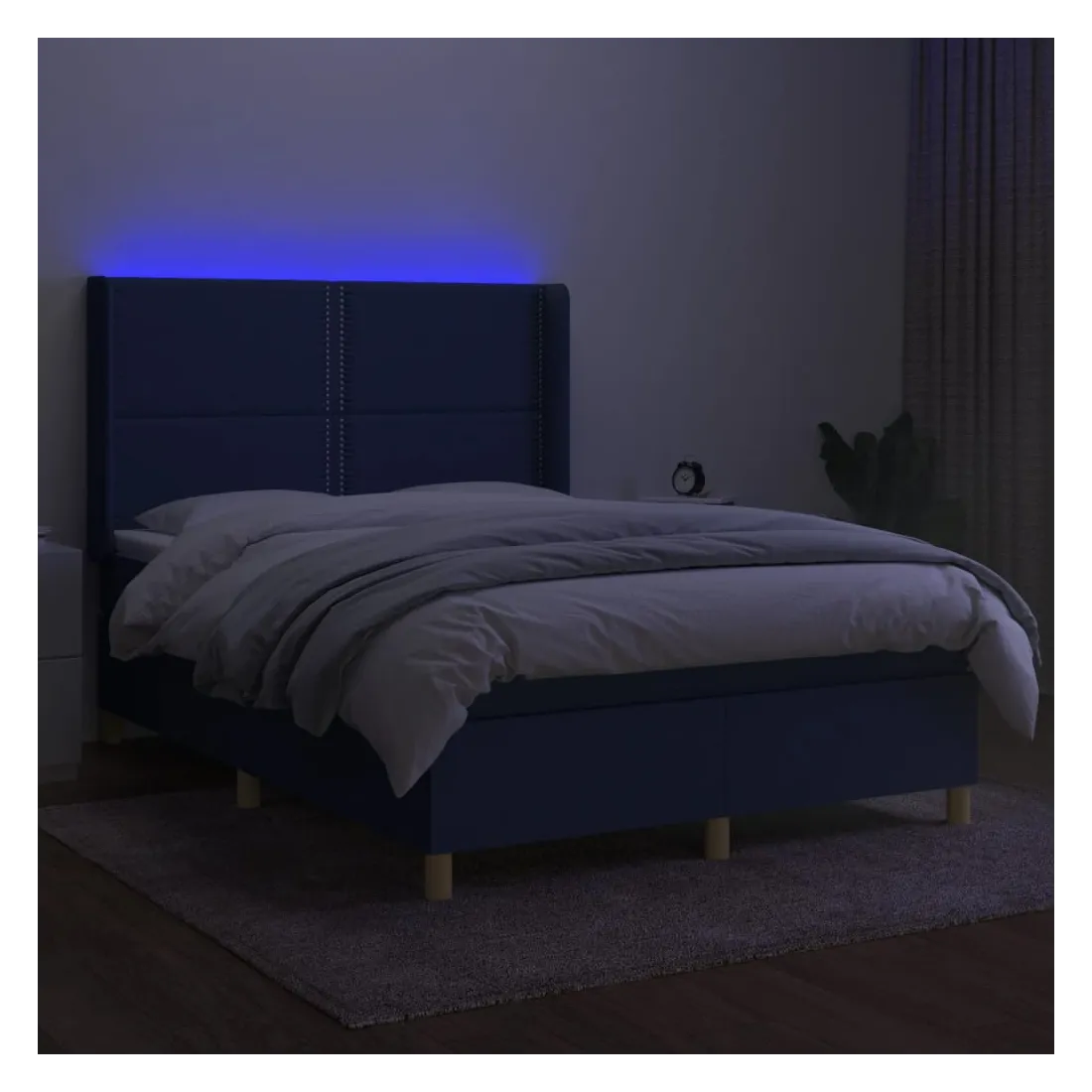 Utilisez ce sommier tapissier avec matelas et LED pour profiter d'un sommeil réparateur ! C'est le point central de votre chambre à coucher. Tissu durable : le tissu présente un aspect simple et épuré, et il est respirant et durable.Tête de lit pratique : la tête de lit est réglable en hauteur selon vos préférences. La tête de lit vous offre un excellent soutien du dos lorsque vous êtes assis dans votre lit pour lire ou regarder la télévision.Bande LED colorée : apportez de l'éclairage dans l'obscurité avec des lumières LED colorées !Matelas à ressorts ensachés : le ressort ensaché individuel intégré est connu pour sa très haute qualité tout en assurant un haut niveau de durabilité et d'adaptabilité. Il peut absorber efficacement le bruit et les chocs causés par les sauts et les rotations.Protège-matelas doux pour la peau : le protège-matelas est recouvert d'un tissu résistant et doux pour la peau, ce qui le rend souple et confortable. Remarque :Pour des raisons d'hygiène, le matelas ne peut pas être retourné si l'emballage est retiré ou ouvert.Seule la partie avec un symbole de ciseaux peut être coupée et seule la partie avec l'USB continuera à fonctionner comme avant.Chaque produit est livré avec un manuel de montage dans la boîte pour un montage facile.Ce produit est doté d'un connecteur USB, mais la source d'alimentation certifiée de USB 5V n'est pas incluse.
