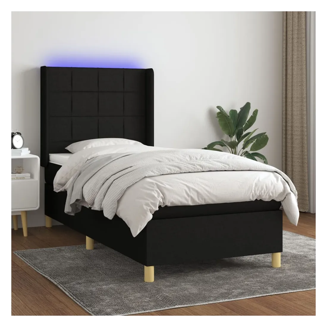 Sommier à lattes de lit matelas et LED Noir 90x200 cm Tissu