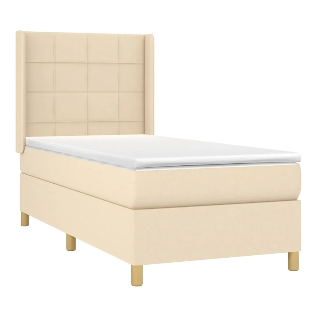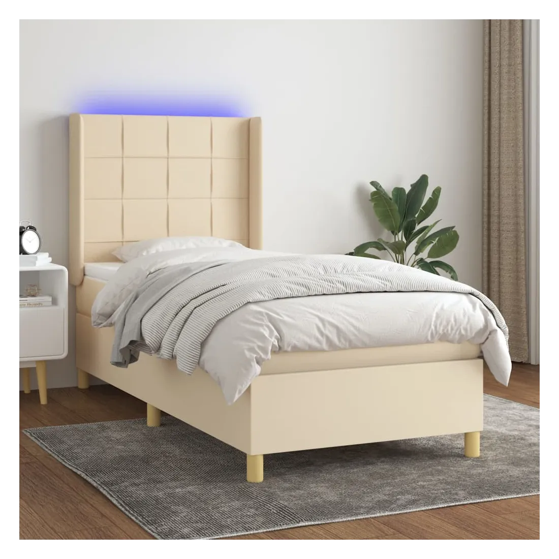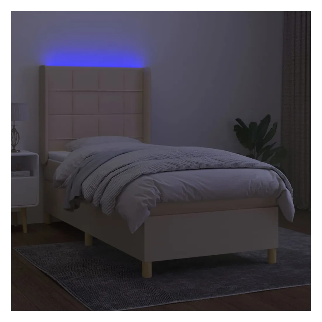 Sommier à lattes de lit matelas et LED Crème 90x200 cm Tissu