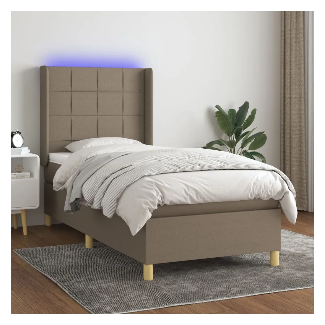 Sommier à lattes de lit matelas et LED Taupe 100x200 cm Tissu