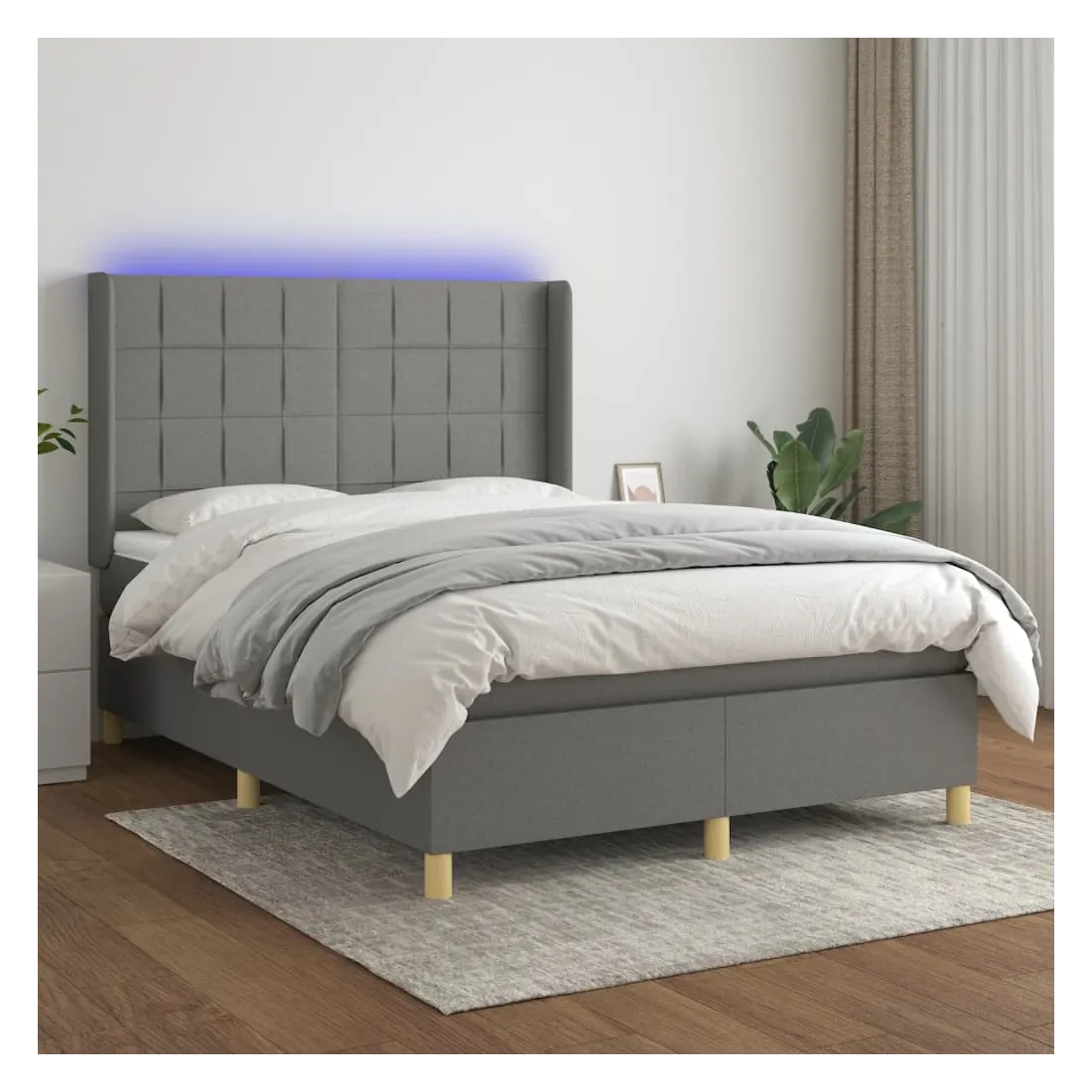 Utilisez ce sommier tapissier avec matelas et LED pour profiter d'un sommeil réparateur ! C'est le point central de votre chambre à coucher. Tissu durable : le tissu présente un aspect simple et épuré, et il est respirant et durable.Tête de lit pratique : la tête de lit est réglable en hauteur selon vos préférences. La tête de lit vous offre un excellent soutien du dos lorsque vous êtes assis dans votre lit pour lire ou regarder la télévision.Bande LED colorée : apportez de l'éclairage dans l'obscurité avec des lumières LED colorées !Matelas à ressorts ensachés : le ressort ensaché individuel intégré est connu pour sa très haute qualité tout en assurant un haut niveau de durabilité et d'adaptabilité. Il peut absorber efficacement le bruit et les chocs causés par les sauts et les rotations.Protège-matelas doux pour la peau : le protège-matelas est recouvert d'un tissu résistant et doux pour la peau, ce qui le rend souple et confortable. Remarque :Pour des raisons d'hygiène, le matelas ne peut pas être retourné si l'emballage est retiré ou ouvert.Seule la partie avec un symbole de ciseaux peut être coupée et seule la partie avec l'USB continuera à fonctionner comme avant.Chaque produit est livré avec un manuel de montage dans la boîte pour un montage facile.Ce produit est doté d'un connecteur USB, mais la source d'alimentation certifiée de USB 5V n'est pas incluse.