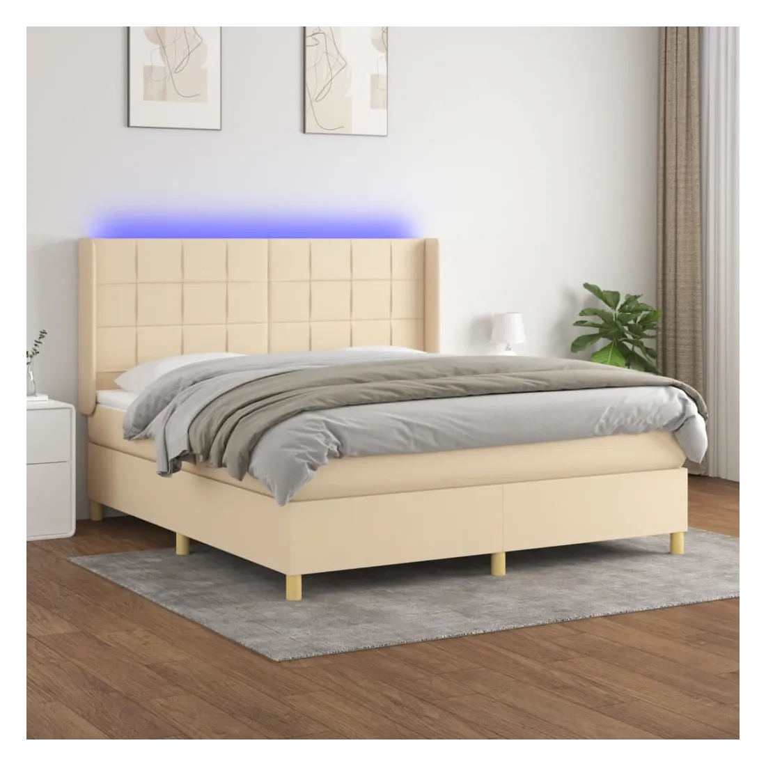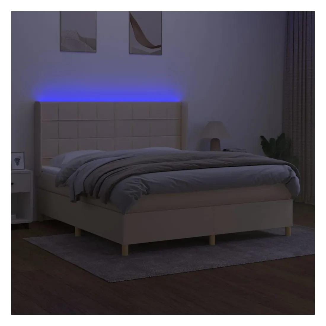 Sommier à lattes de lit matelas et LED Crème 180x200 cm Tissu