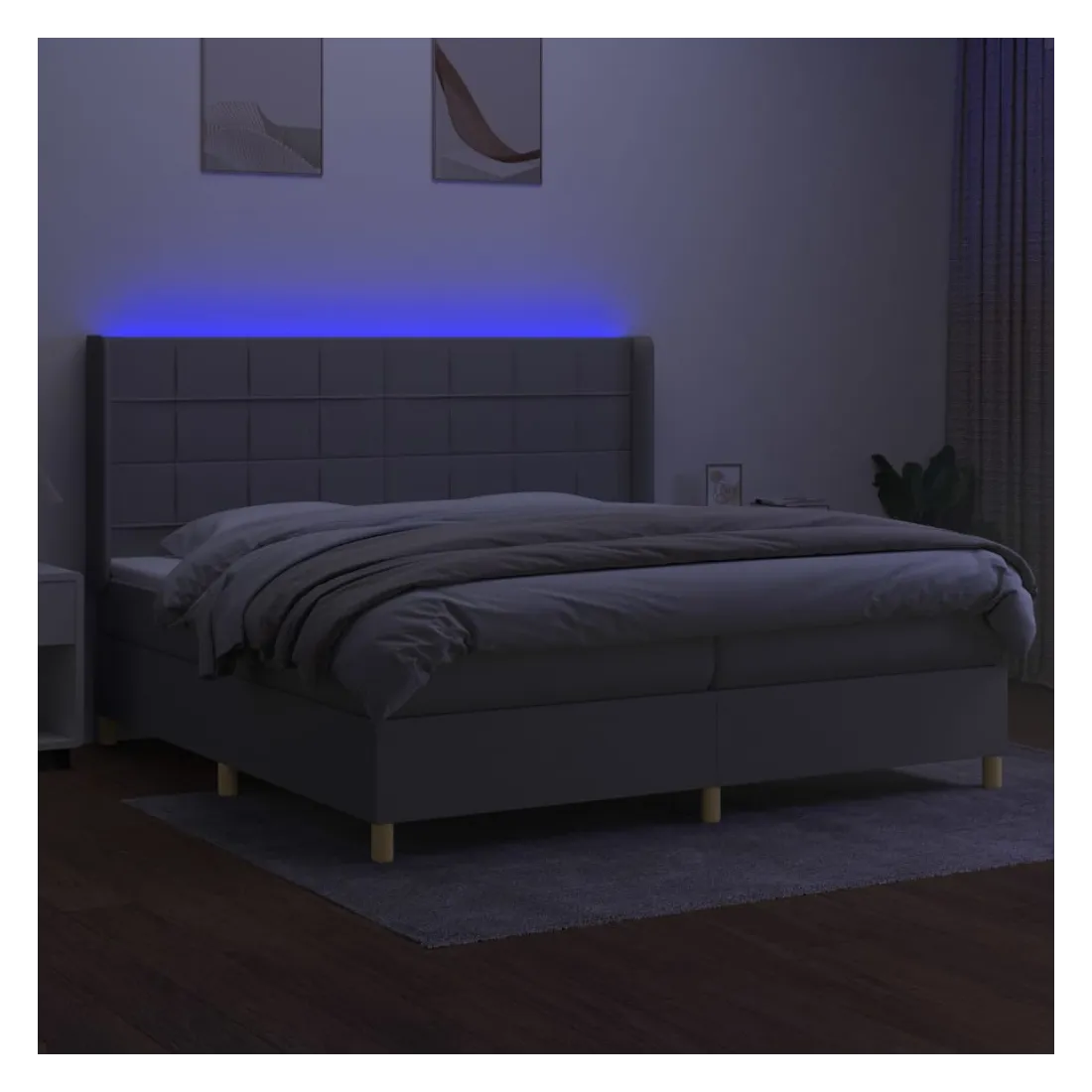 Utilisez ce sommier tapissier avec matelas et LED pour profiter d'un sommeil réparateur ! C'est le point central de votre chambre à coucher. Tissu durable : le tissu présente un aspect simple et épuré, et il est respirant et durable.Tête de lit pratique : la tête de lit est réglable en hauteur selon vos préférences. La tête de lit vous offre un excellent soutien du dos lorsque vous êtes assis dans votre lit pour lire ou regarder la télévision.Bande LED colorée : apportez de l'éclairage dans l'obscurité avec des lumières LED colorées !Matelas à ressorts ensachés : le ressort ensaché individuel intégré est connu pour sa très haute qualité tout en assurant un haut niveau de durabilité et d'adaptabilité. Il peut absorber efficacement le bruit et les chocs causés par les sauts et les rotations.Protège-matelas doux pour la peau : le protège-matelas est recouvert d'un tissu résistant et doux pour la peau, ce qui le rend souple et confortable. Remarque :Pour des raisons d'hygiène, le matelas ne peut pas être retourné si l'emballage est retiré ou ouvert.Seule la partie avec un symbole de ciseaux peut être coupée et seule la partie avec l'USB continuera à fonctionner comme avant.Chaque produit est livré avec un manuel de montage dans la boîte pour un montage facile.Ce produit est doté d'un connecteur USB, mais la source d'alimentation certifiée de USB 5V n'est pas incluse.