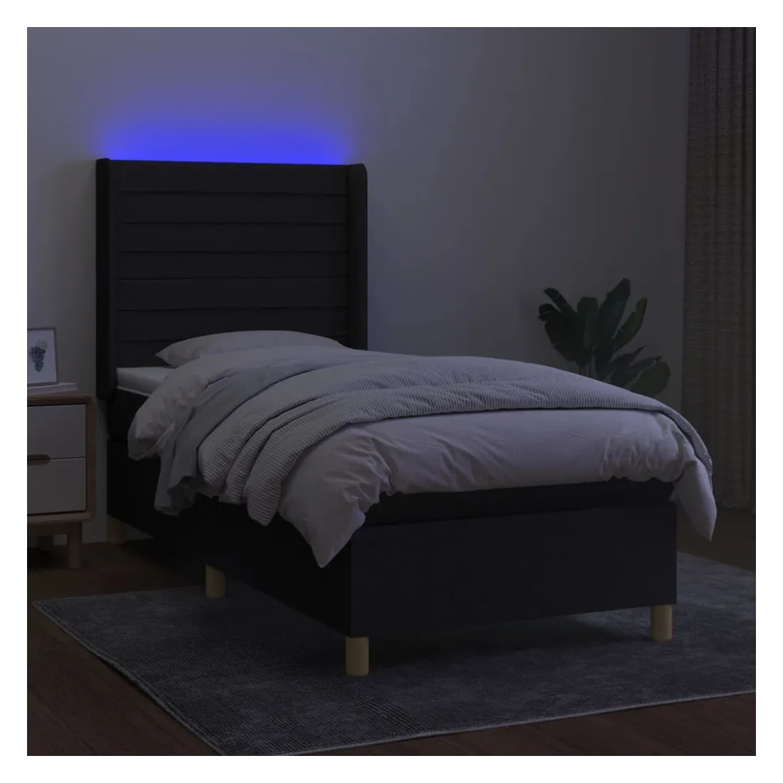 Sommier à lattes de lit matelas et LED Noir 80x200cm Tissu